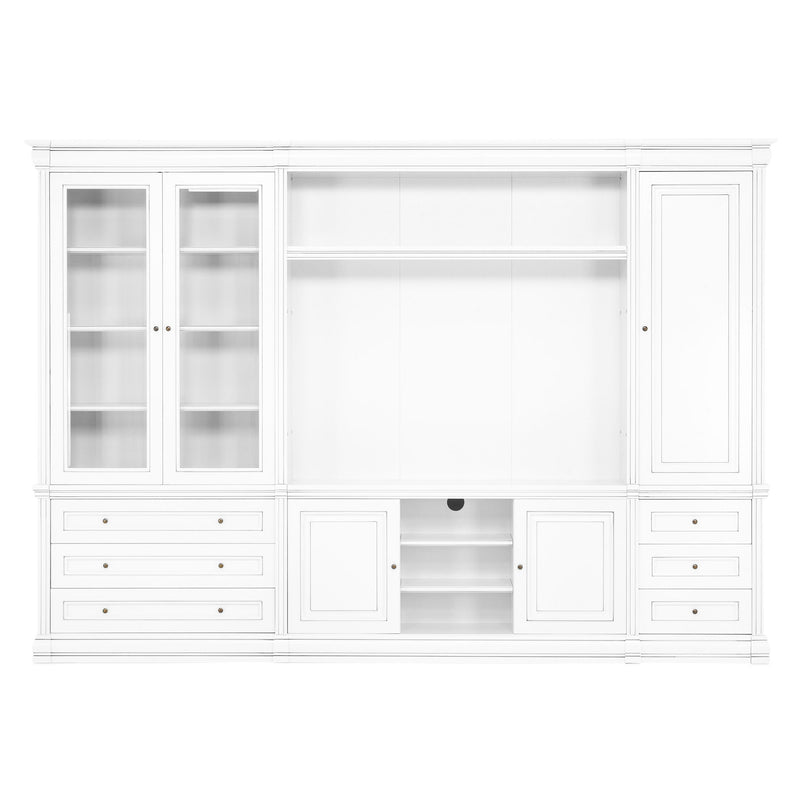 - 1x etajeră lată, 3 sertare, 2 uși sticlă: L. 103 x l. 34 x H. 230 cm.