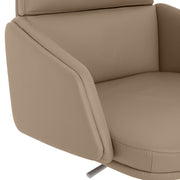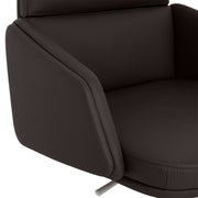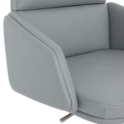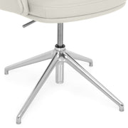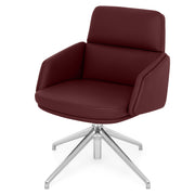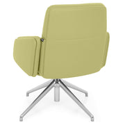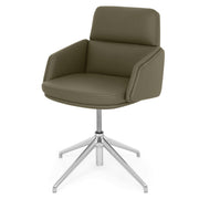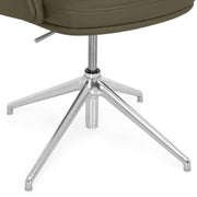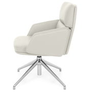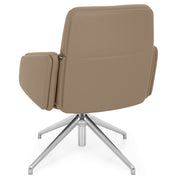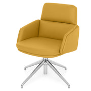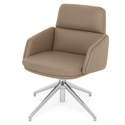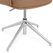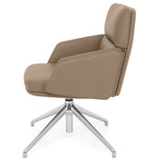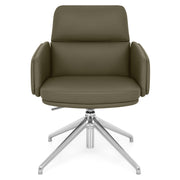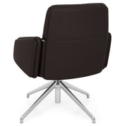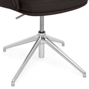 Scaun birou Lead. Scaunul meeting din gama Lead este o piesă indispensabilă pentru orice zonă de birouri. Confortabil și elegant, scaunul are o bază metalică fixă realizată din aluminiu, cu 4 raze și finisaj crom. Scaunul este prevăzut cu piciorușe din cauciuc pentru protecția pardoselei. Suportul șezut este fabricat din lemn stratificat, acoperit cu un strat de 55 mm grosime din spumă poliuretanică expandată, nedeformabilă și ignifugă. Brațele fixe sunt realizate din lemn stratificat, acoperit cu un strat de 30 mm grosime din spumă poliuretanică expandată, nedeformabilă și ignifugă. De asemenea, suportul pentru spătar este realizat din lemn stratificat, acoperit cu un strat de 100 mm grosime din spumă poliuretanică expandată, nedeformabilă și ignifugă. Scaunul este prevăzut cu mecanisme de ajustare a înălțimii scaunului cu pompă de gaz, cu rotație șezut-spătar 360 de grade. Produsul este tapițat din piele naturală.