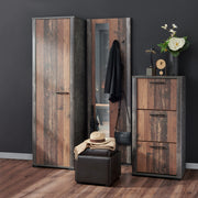 Cuier cu oglindă Aramis. Schimbarea spațiului de acasă poate începe chiar din hol, cuierul din gama Aramis fiind potrivit pentru a-l amenaja cu eleganță și stil în casa voastră. Acesta este realizat dintr-un material lemnos acoperit cu folie deco, iar finisajul este în gri și stejar. Cuierul are 4 agățătoare unde să vă lăsați hainele și umbrela, cromatica și estetica sa fiind plăcute ochiului.
