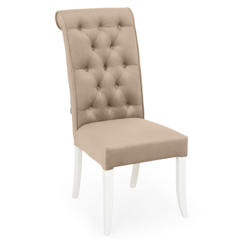 Scaun Armand. Scaunul din gama Armand este alegerea elegantă pentru o zonă de dining în care rafinamentul să fie o caracteristică de bază. Scaunul are o structură din lemn masiv de fag și este tapițat în stofă, pentru un plus de confort, iar cromatica alb și roz dă un plus de stil, pentru o notă estetică deosebită.