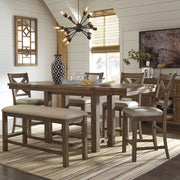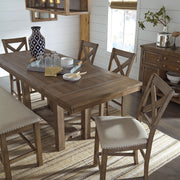Masă bar extensibilă Moriville. Gama de produse Moriville ridică stilul rustic la nivel de artă, impresionând prin finisajul de nucșoară antichizată. Acestea sunt fabricate din lemn de calitate pentru a oferi o gamă rezistentă și durabilă timp îndelungat. Masa extensibilă pentru bar Moriville reprezintă o alegere perfectă pentru decorarea livingului. Stilul reprezentativ unei ferme, împreună cu căptușeala curată, a mesei extensibile, este înfrumusețat cu un finisaj de nuc vintage cu efect de scânduri groase pentru un plus de farmec. Extensibilitatea reprezintă un plus foarte important pentru petrecerile împreună cu întreaga familie.