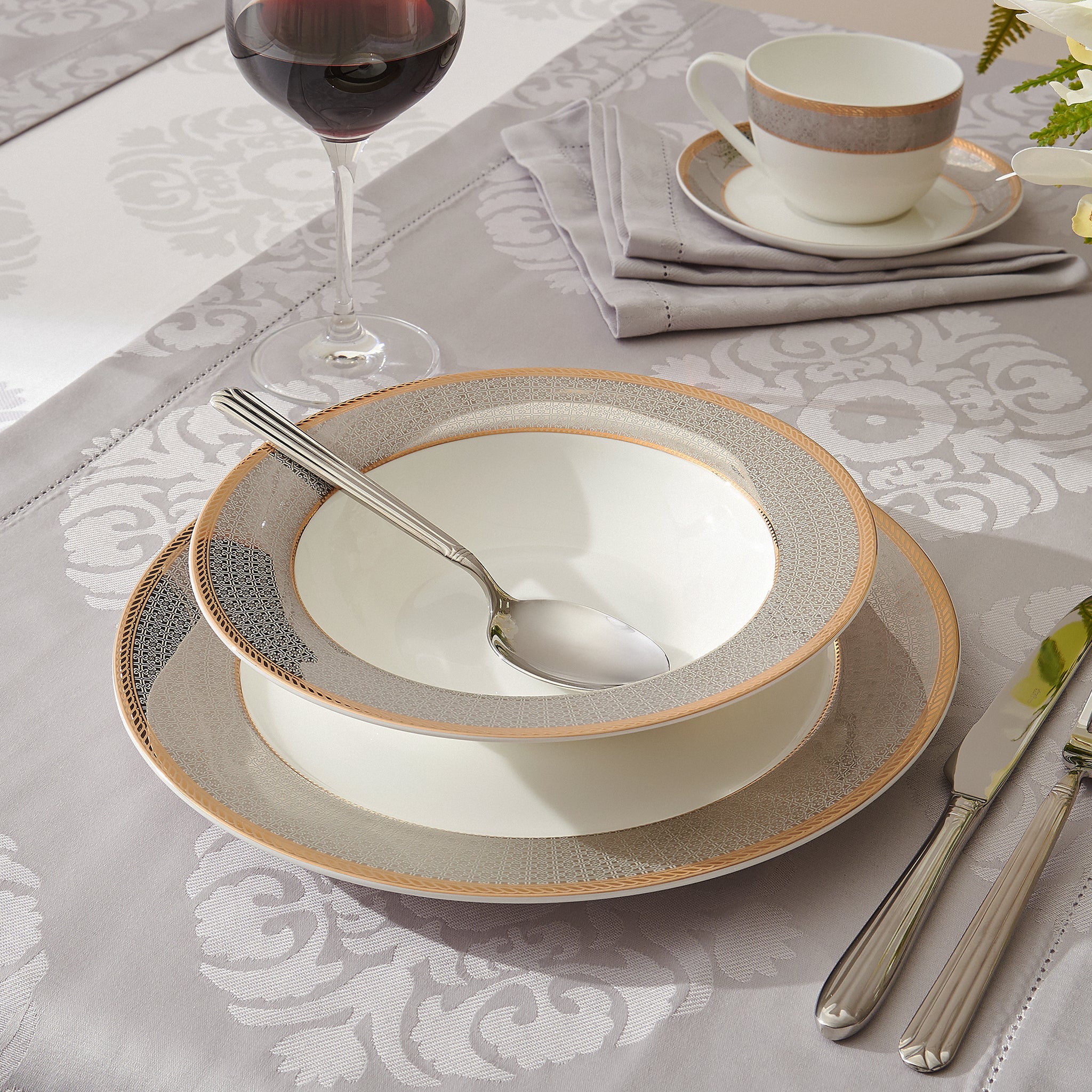 Șervet decorativ masă Palace. Creați o atmosferă deosebită și primitoare în în timpul servirii mesei completând decorul cu șervetul decorativ pentru masă din gama Palace. Designul simplu cu jocuri geometrice subtile, inspirate de natură, aduce un plus de prospețime și eleganță pe masa voastră prin motivele de inspirație florală.