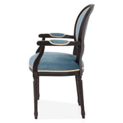 Scaun cu brațe Chance. O expresie a stilului nobil, scaunul cu brațe din gama Chance este o alegere distinsă pentru zona de dining unde vă doriți să predomine notele luxuriante și pline de eleganță. Funcționalul este devansat de latura estetică, având detalii atent desenate în lemnul masiv de fag, iar tapițeria din stofă verde smarald dă un plus de rafinament și un aer prețios. Cu siguranță, scaunul va fi un element central din amenajarea camerei din casa voastră.