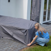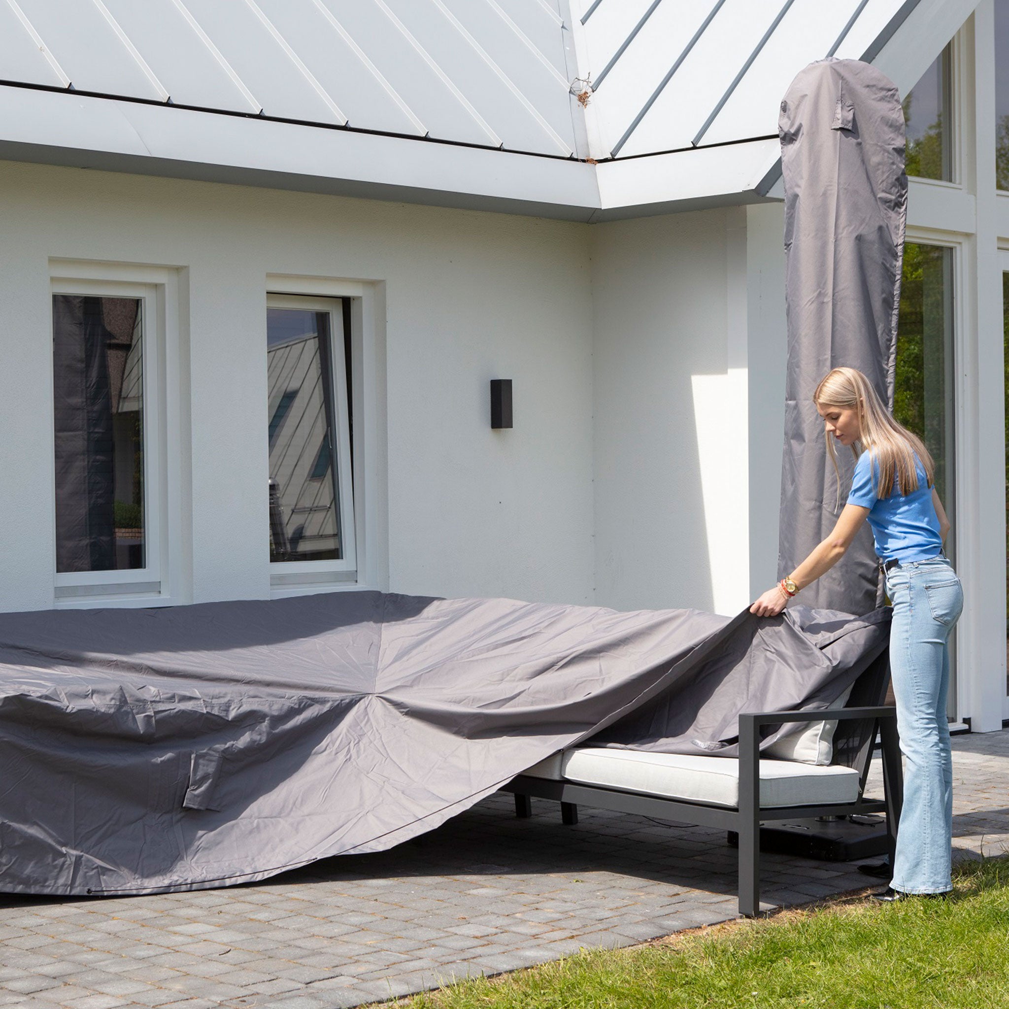 Husă protecție colțar Cover. Poate nu v-ați gândit până acum cum puteți să vă protejați colțarul de acasă, dar husa de protecție din gama Cover este accesoriul perfect cu care să îi oferiți un grad de protecție ridicat împotriva intemperiilor care se pot abate peste acesta. Aceasta este confecționată integral din poliester, în partea de jos fiind înțesată cu găuri și șnur pentru un design modern. Comandați acum pentru colțarul la care țineți cel mai mult o husă de protecție care să îi fie de ajutor într-o păstrare cât mai îndelungată pe terasa sau în grădina de acasă.