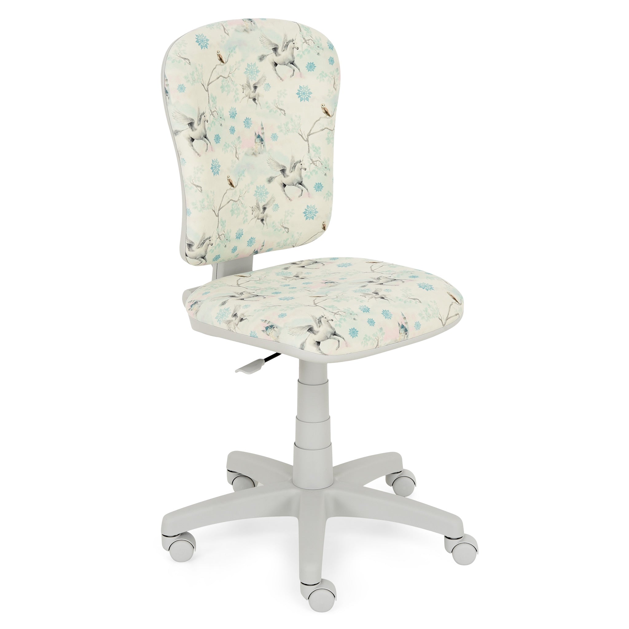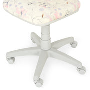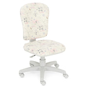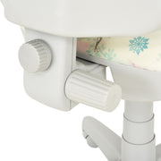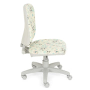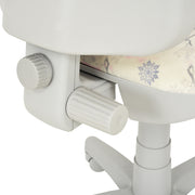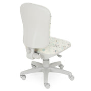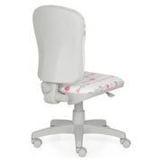 Scaun ergonomic birou copii Dona. Scaunul de birou Dona este simbolul eficienței la masa de lucru, oferindu-i copilului vostru confortul de care are nevoie. Datorită sistemului de reglare a spătarului și înălțimii, acesta favorizează poziția corectă a corpului, protejând astfel coloana vertebrală. Scaunul are o bază mobilă din plastic, de tip stea cu 5 brațe, iar șezutul și spătarul sunt îmbrăcate cu spumă poliuretanică, tapițate cu microfibră imprimată. Totodată, are un model vesel, cu imprimeu colorat, ideal pentru camera de lucru a copilului.