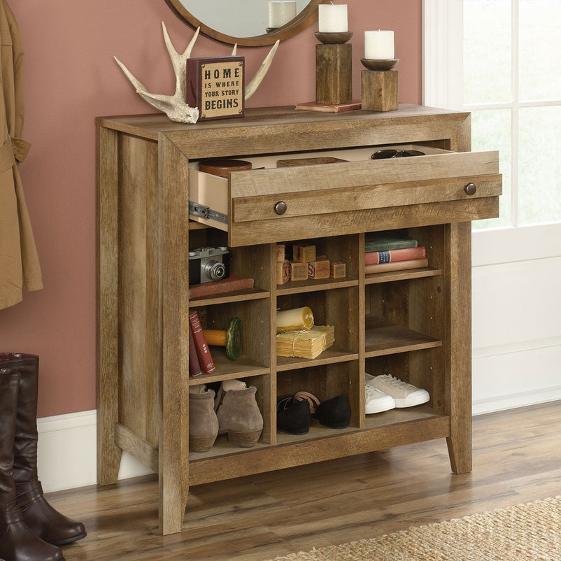 Comodă hol Dakota. Comoda pentru hol Dakota vă ajută să creați o atmosferă caldă pe care o căutați datorită finisajului natural cu influențe rustice. Aceasta oferă ambientului vostru o notă aparte de eleganță demnă de casele decorate în stil modern. De asemenea, comoda pentru hol Dakota este rezistentă și durabilă datorită materialelor de calitate din care este fabricată.