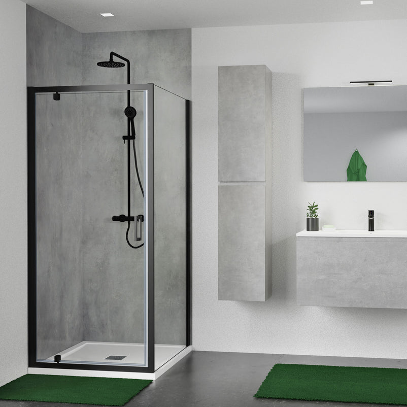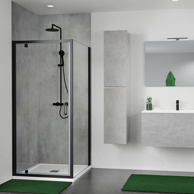 Sistem duș ușă batantă sticlă 6mm Eos. Realizat din sticlă securizată și profil din aluminiu.