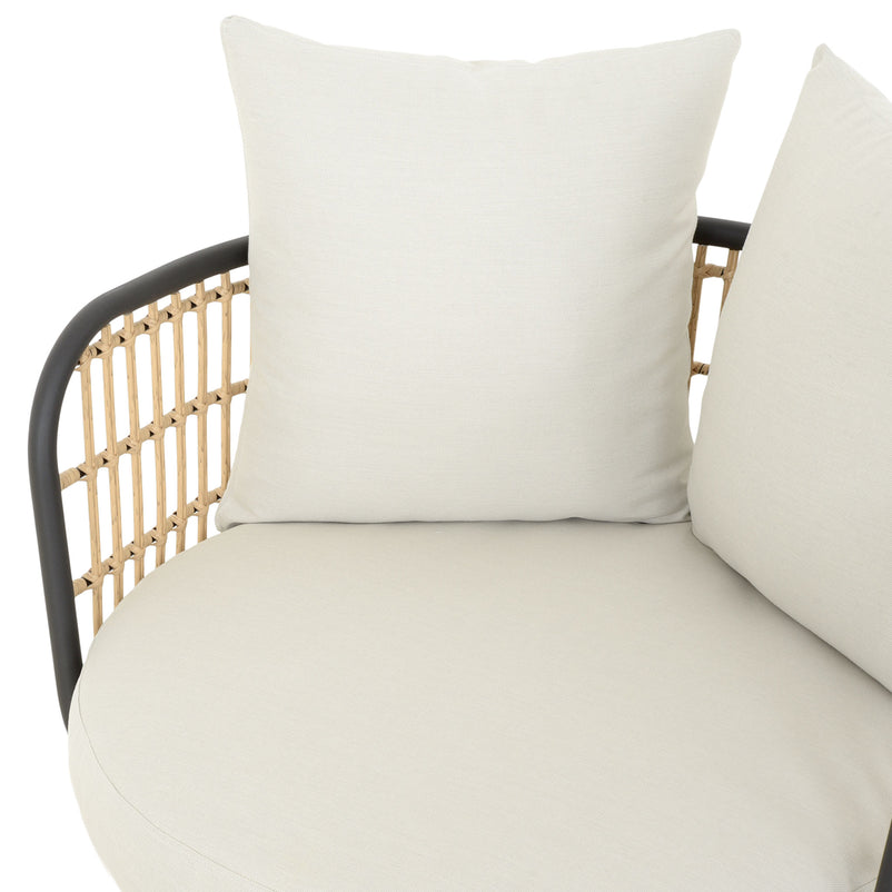 Fotoliu exterior Arden. Colțarul Arden va fi elementul central de pe terasa sau grădina voastră, amenajând exteriorul cu stil și bun gust. Formele ample și generoase ale fotoliului sunt rezistente și durabile. Acesta este realizat din structură solidă de aluminiu și oțel vopsită în câmp electrostatic și împletită cu fibre sintetice tratate UV. De asemenea, include perne îmbrăcate în țesătură Olefin cu protecție împotriva umezelii și a razelor UV, ceea ce îl fac perfect pentru terasa sau grădina voastră.
