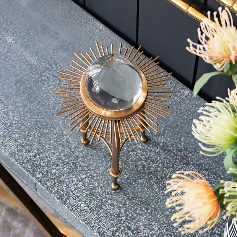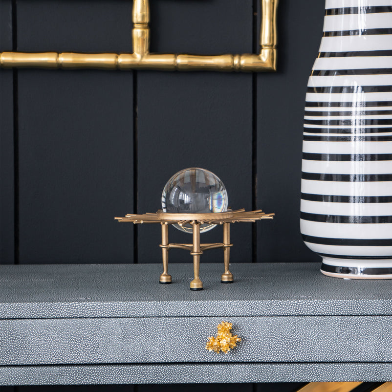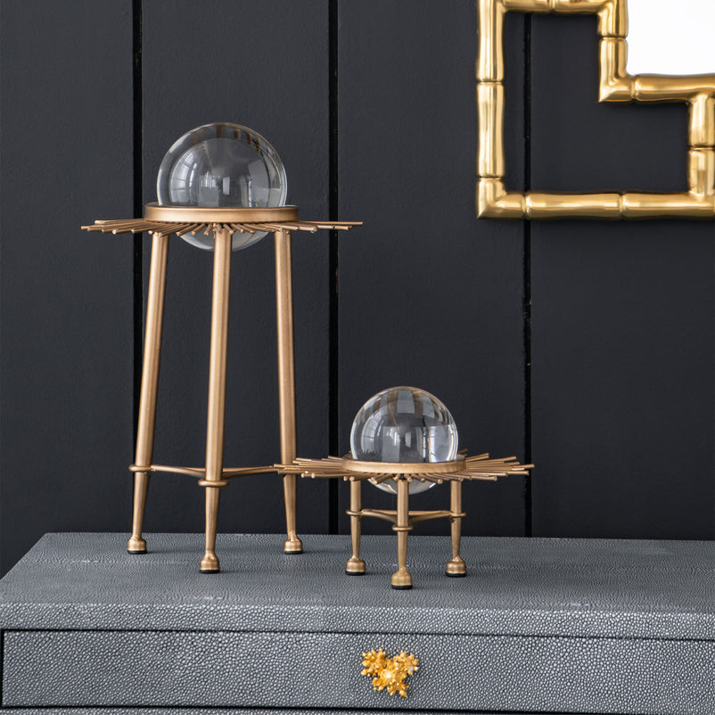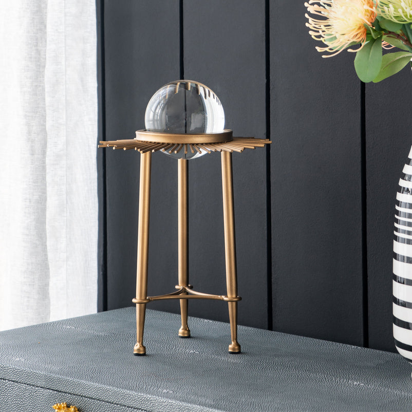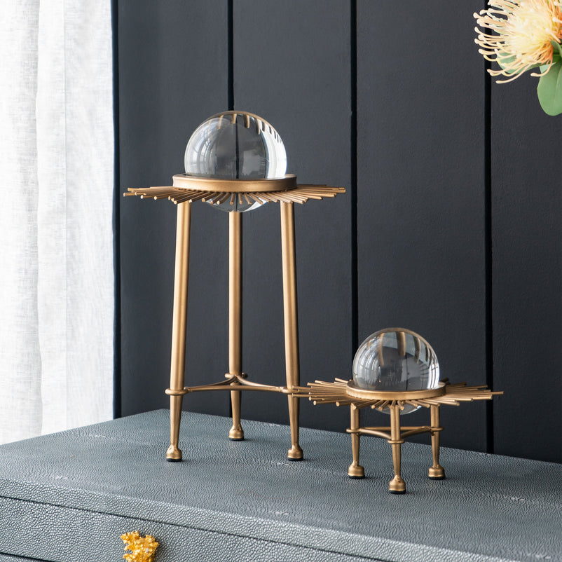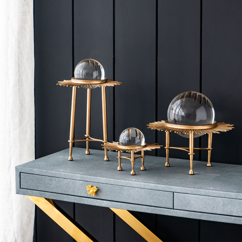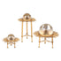 Set 3 decorațiuni Sardi. Decorațiunile Sardi au caracteristicile unui accesoriu oriental și vor aduce un plus de stil spațiului interior. Cromatica și ideea artistică le recomandă drept piese care vor îmbogăți și vor aduce impact în amenajarea casei voastre. Acestea sunt realizate din metal vopsit auriu și sticlă și sunt ideale pentru romantici, pentru cei ce iubesc experiențele noi și au o dispoziție pozitivă.
