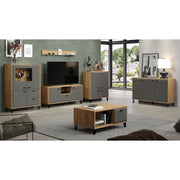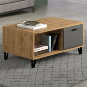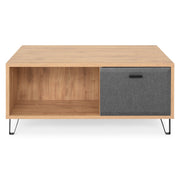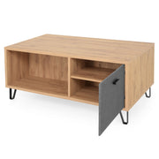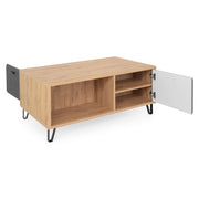 Măsuță cafea Felt. Completați decorul cu măsuța de cafea din gama Felt pentru a crea un mediu ideal pentru socializare și petrecerea momentelor de pauză de peste zi. Măsuța, într-un contrast elegant de stejar și gri, vă mai pune la dispoziție și trei spații de depozitare, dintre care două cu ușă.