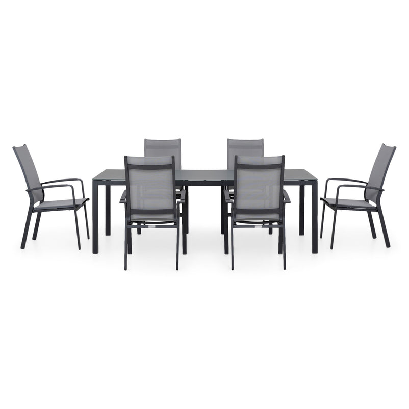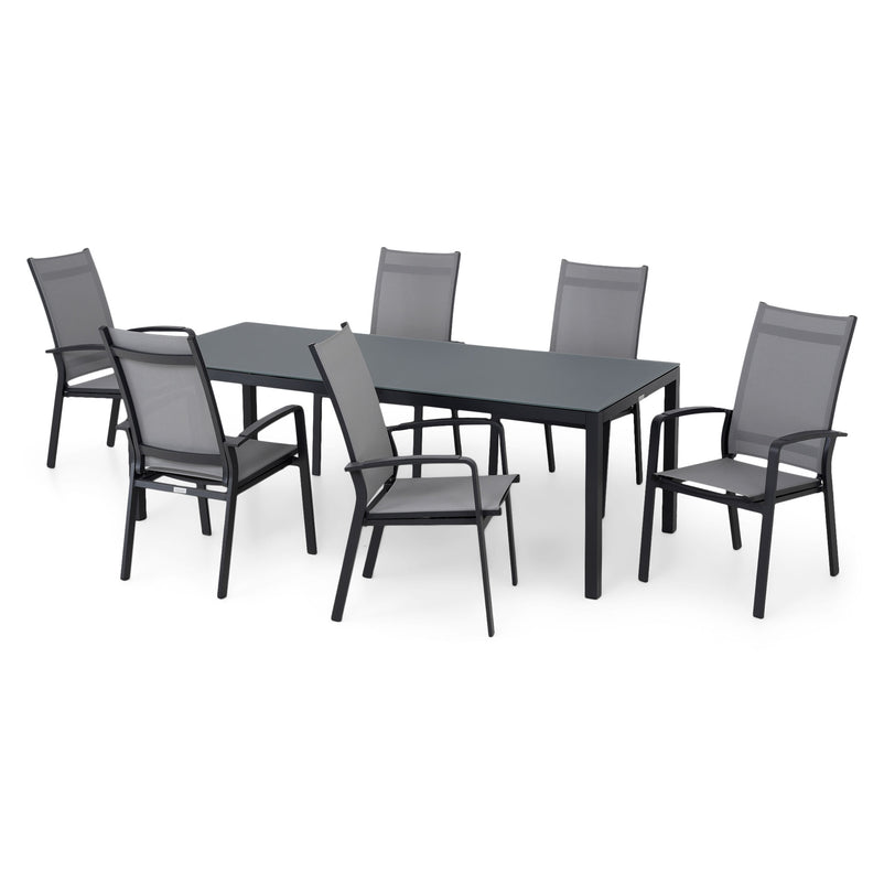 PROSSECO Set mobilier gradina/terasa, 6 scaune cu spatar reglabil și masa