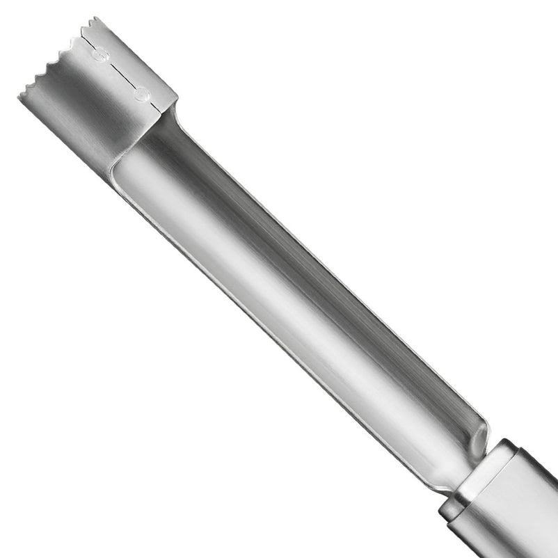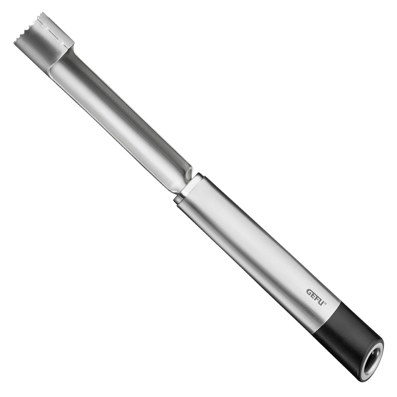 Dispozitiv curățare Primeline. Acest decupator de mere este un instrument ideal pentru a scoate rapid și curat miezul din mere și pere. Datorită lamei zimțate, procesul de decupare devine foarte ușor, alunecând fără efort în pulpa fructului și îndepărtând miezul eficient. Este indispensabil atunci când pregătiți mere coapte, dar și pentru pere umplute cu merisoare sau pentru a le combina cu carne de vânat, oferindu-le o textură perfectă pentru gătit.