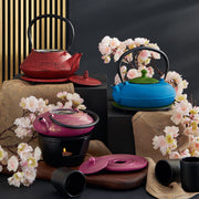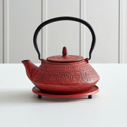 Ceainic cu trivet Korai. Caracteristicile fontei: Fonta se caracterizează prin capacitatea sa de a stoca căldura sau frigul mai mult timp. Fonta este un material rezistent în timp. Durata medie de viață a unui ceainic din fonta este de aproximativ 5 ani. Instrucțiuni de folosire: Înainte de prima utilizare, trebuie să clătiți produsul de mai multe ori cu apă călduță și apoi se usucă bine. Fonta nu este potrivită pentru niciun tip de sursă de căldură, se recomandă infuzarea ceaiului în funcție de tipul de ceai. Lăsați produsul încălzit să se răcească înainte de clătirea manuală, evitați fluctuațiile de temperatură (a nu se turna apă rece peste produsul încins).