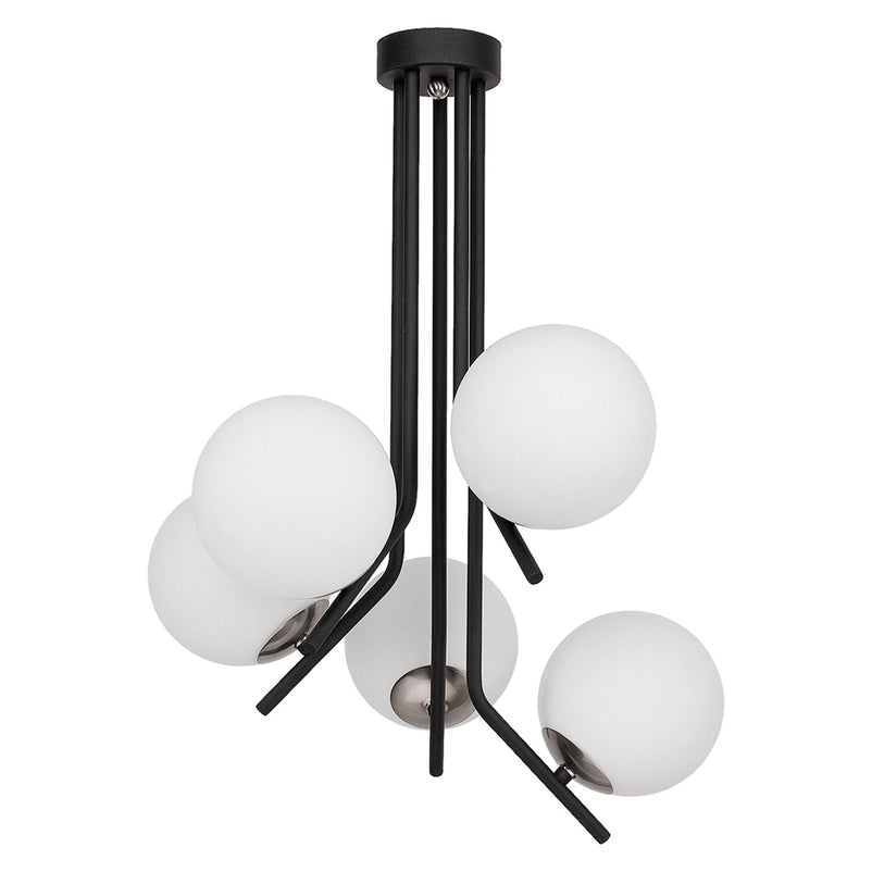 Lustră Tim. Lustra din gama Tim este elegantă și versatilă, iluminând cu eficiență spațiul din dormitor sau din living. Este realizată din metal, iar abajururile din sticlă, completând modern designul acesteia.