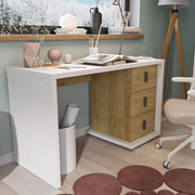 Birou copii, 3 sertare Melina. Biroului din gama Melina se distinge printr-un design cubic și o construcție masivă, confecționat din panouri aglomerate din lemn melaminat, finisat cu o margine din ABS. Latura funcțională este bifată de cele 3 sertare spațioase ce îi permit celei mici să își organizeze rechizitele după bunul plac.