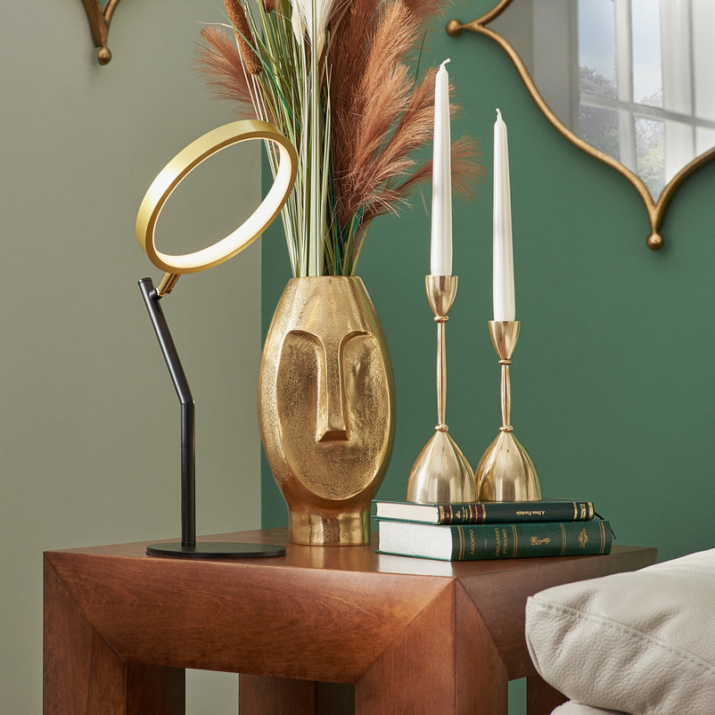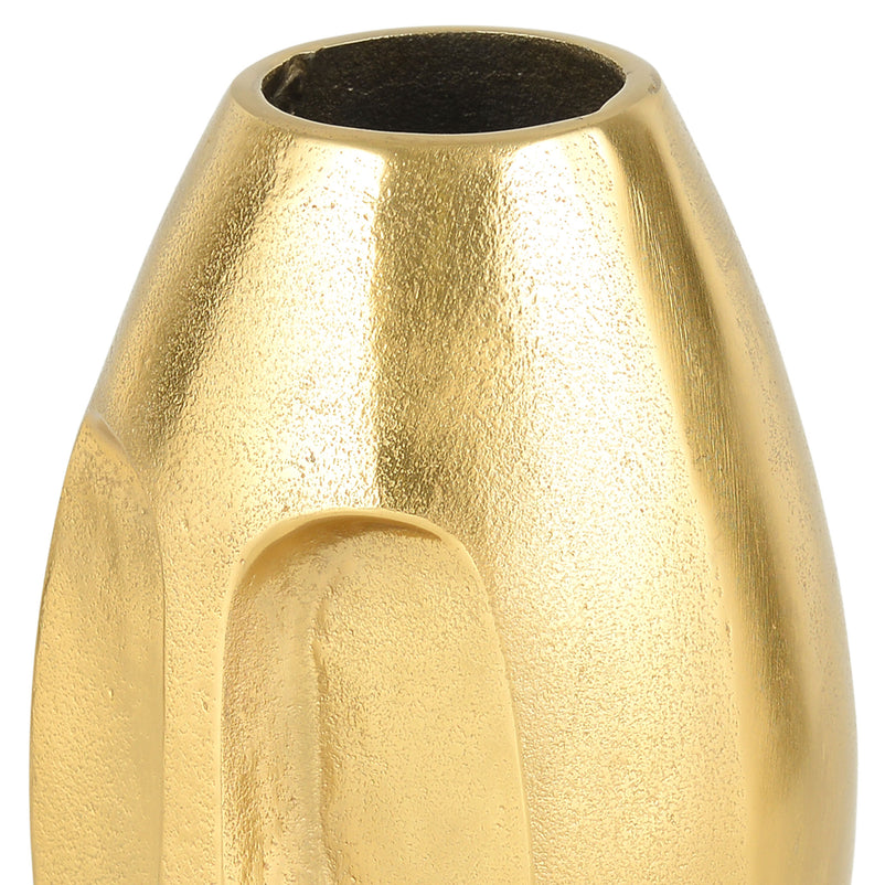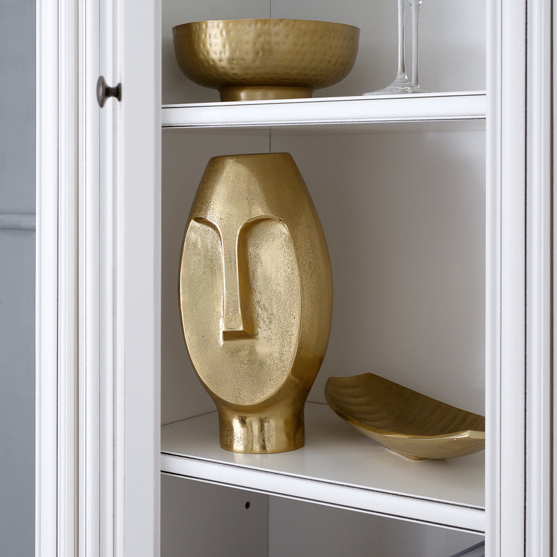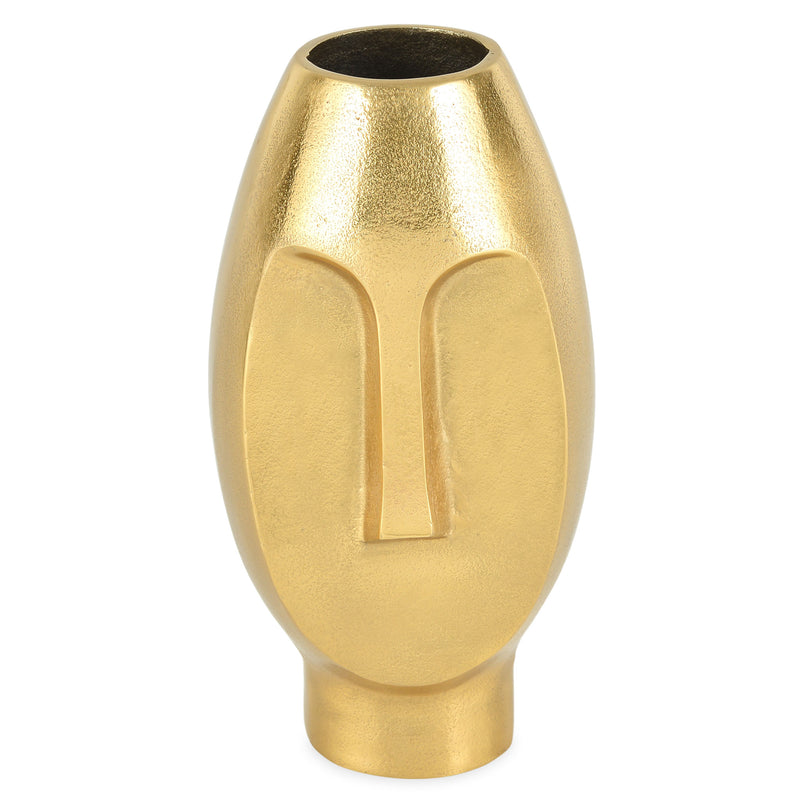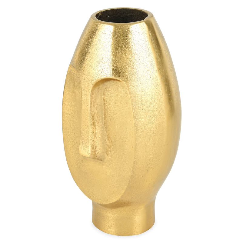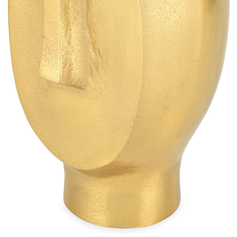 Vază Sculpture. Asemănătoare unei piese de artă, lucrată cu pricepere și minuțiozitate, vaza Sculpture este o piesă cu un design original pe care să o aveți în living pe masă. Aceasta este realizată în totalitate din aluminiu și are un finisaj lucios care degajă strălucire. Vaza are sculptat un chip uman pe una din fețe, creându-i un design deosebit de creativ.