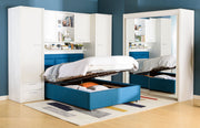 Corp suspendat Moon. Ideal pentru a crea spații suplimentare de depozitare în cadrul dormitorului vostru, corpul suspendat Moon se integrează perfect într-un decor modern. Este dotat cu trei nișe, două ascunse în spatele ușilor și una deschisă, care pot găzdui obiectele de care aveți nevoie în mod constant. Polița aflată în partea inferioară a acestora este locul perfect pentru decorațiuni.