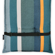 Pernă scaun cu spătar Stripe Green. Perna Stripe Green îmbunătățește confortul vostru în timpul petrecut pe scaun. Materialul din care este confecționată o face pufoasă și moale. Poate fi folosită pe orice tip de scaun cu spătar, mai ales pentru cele din spațiul exterior. Perna este fabricată din material de calitate înaltă și este rezistentă împotriva decolorării.