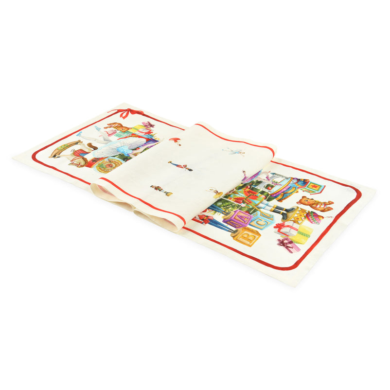 Șervet decorativ masă Schiaccianoci. Șervetul decorativ din gama Schiaccianoci este un accesoriu decorativ perfect pentru mese festive alături de cei dragi. Acesta are un model deosebit, îmbogățit de motive și personaje specifice Crăciunului, creând un ambient călduros și prietenos pentru momentele speciale. De asemenea, acesta are un rol practic pentru a proteja suprafața mesei împotriva zgârieturilor.