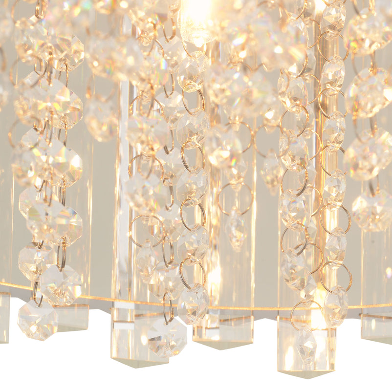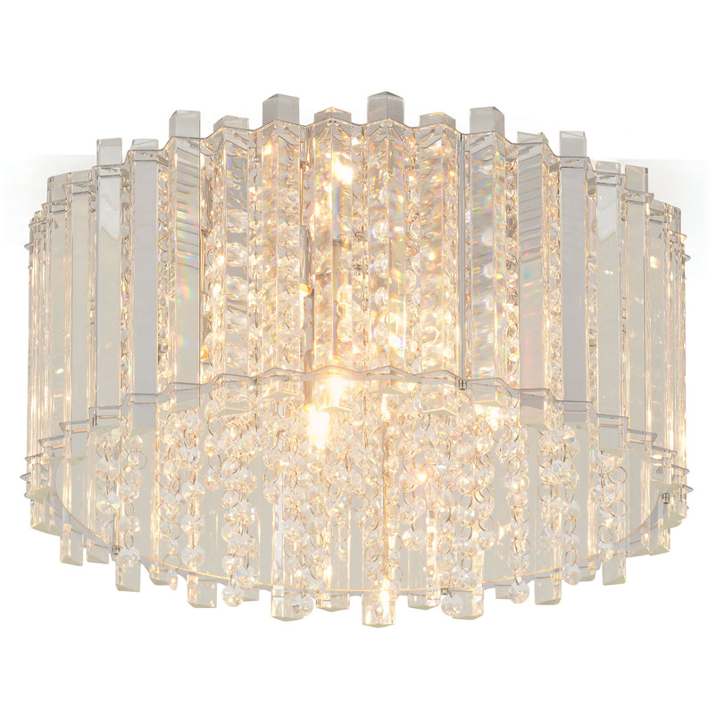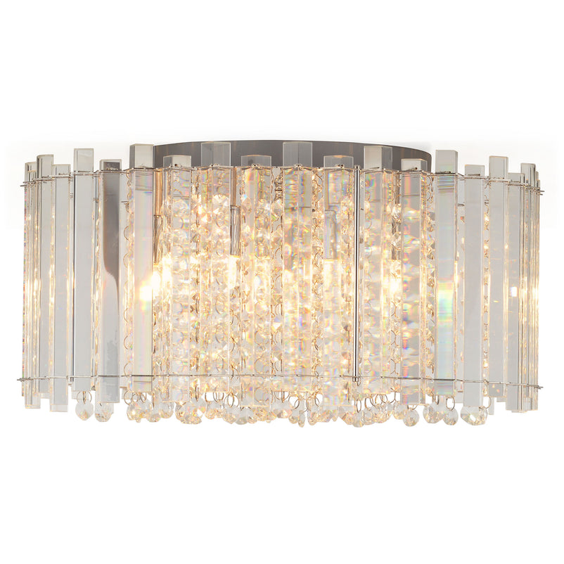 Plafonieră Sarabi. Rafinament și lux ridicate la rang de artă cu un corp de iluminat, care va înnobila casa voastră. Produsul este special prin designul care surprinde prin șirurile de cristale, care reflectă lumina într-o ploaie de sclipire. Produsul îndeplinește latura funcțională, iluminând camera și va aduce un plus de stil, latura estetică devansând latura practică.