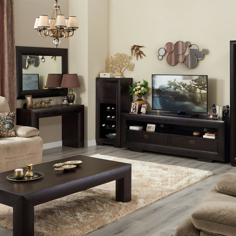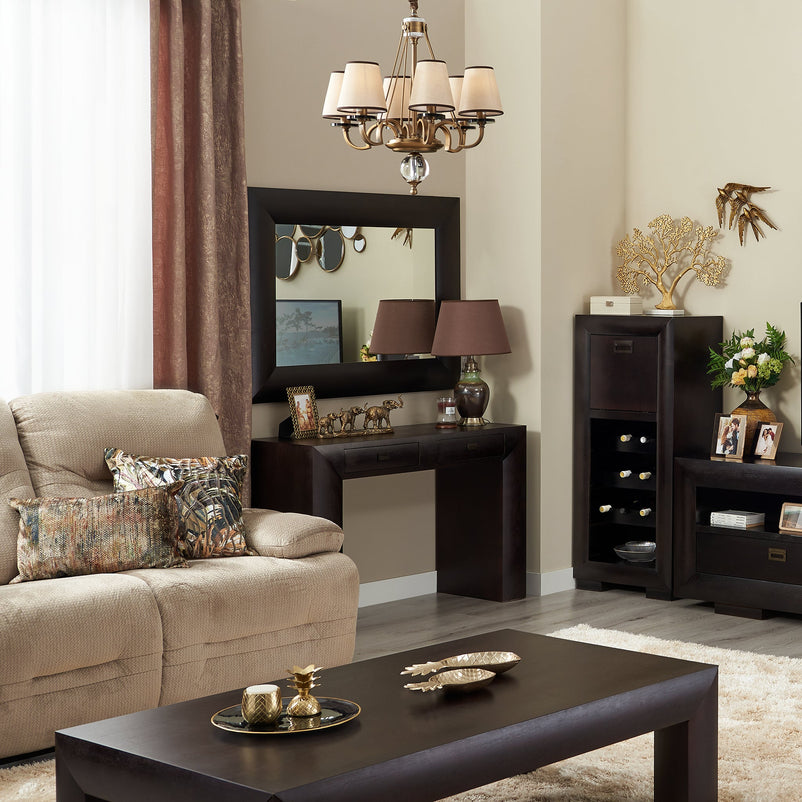 Măsuță Chic. Gama Chic accentuează eleganța pieselor de mobilier de culoare închisă, menite să decoreze cât mai frumos încăperea. Liniile masculine scot în prim plan rotunjimile canturilor, întregind perfect cadrul. Detalii precum mânerele amintesc de metalul șlefuit al bijuteriilor și accentuează aerul prețios al pieselor. Măsuța Chic poate fi amplasată în decoruri diverse, având un aspect deosebit. Aceasta vă stă la dispoziție pentru momentele în care serviți o cană de ceai împreună cu familia.