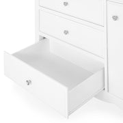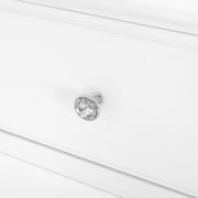 Comodă înfășat Dreams. Adăugați-i, opțional, butonii metalici cu inserție de cristal și va deveni decorul unei prințese într-un palat modern! Mobilierul se distinge printr-un design în tendințele fashioniste, dublat de o construcție robustă și trainică, de care mică dumneavoastră prințesă se va bucura o vreme îndelungată. Rozul diafan al fațadelor ușilor și sertarelor este subliniat de mânerele elegante. Picioarele sunt înalte conice, iar cornișele și soclurile sunt conturate ca o dantelă elegantă. Piesele sunt confecționate din lemn masiv și MDF finisaj vopsit, cu vopsele ecologice, pe bază de apă. Majoritatea pieselor includ sertare adânci, ușor accesibile, chiar și pentru fetițele mai mici. Cele 8 module disponibile acoperă toate funcțiunile necesare într-o cameră de copil: zona de studiu, reprezentată prin etajeră, birou și suprapozabil; zona de depozitare și somn reprezentată prin comoda cu sertare, oglindă, dulapul cu 2 uși, 2 sertare, patul 120 și noptiera. Ansamblul include: comoda înfășată cu butoni rotunzi din MDF vopsit inclus și 4 butoni metalici cu inserție din cristal Bianco.