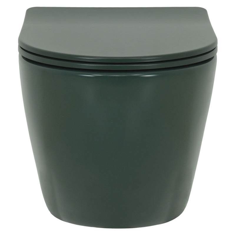Vas toaletă suspendat, ceramică Jade. Vas toaletă suspendat JADE cu tehnologie rimless. Include capac UF (duroplast) cu soft-close și balamale metalice. UF este rigid și rezistent la zgârieturi/decolorare, iar designul rimless elimină „canalul” interior pentru curățare mai ușoară și igienă sporită.