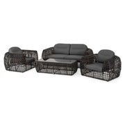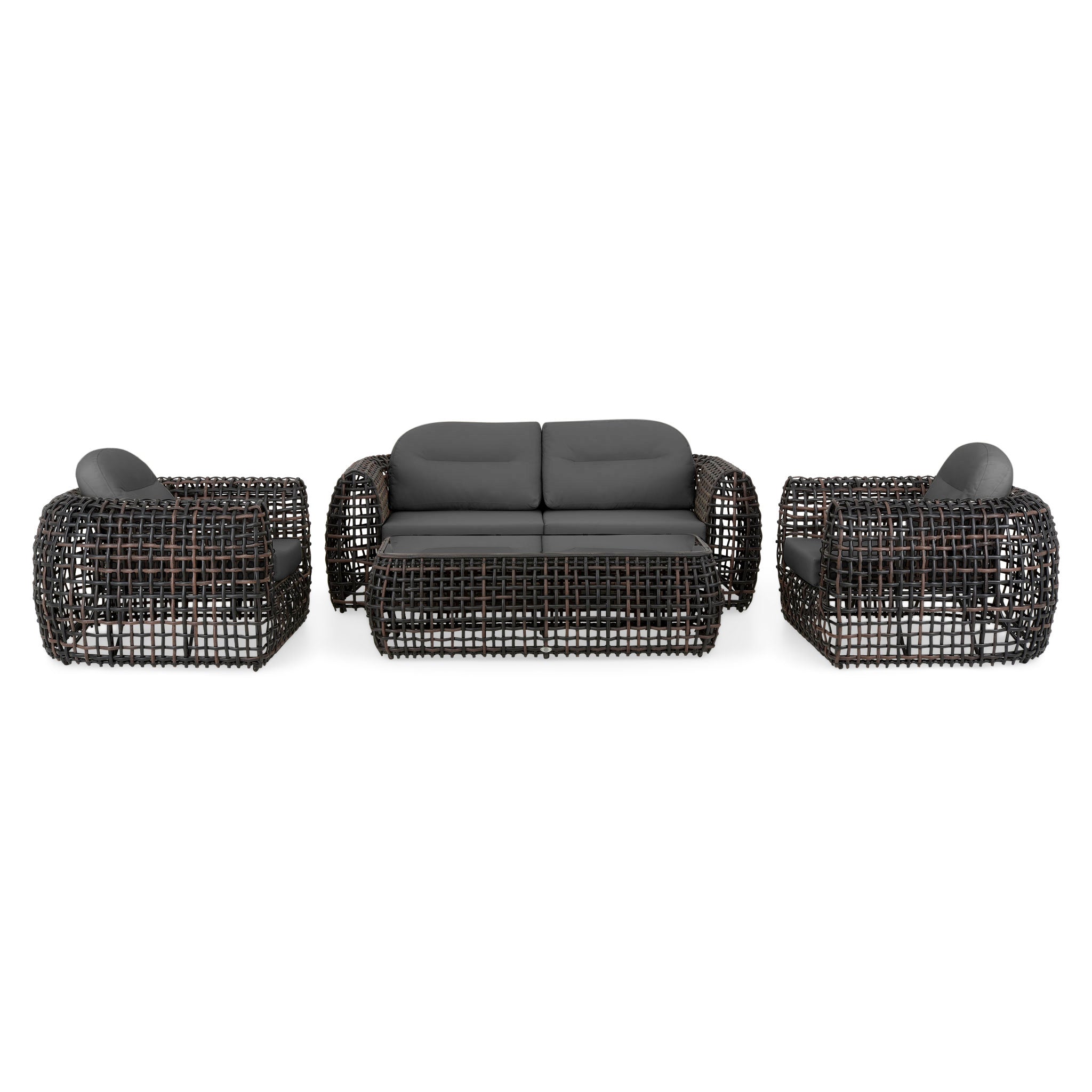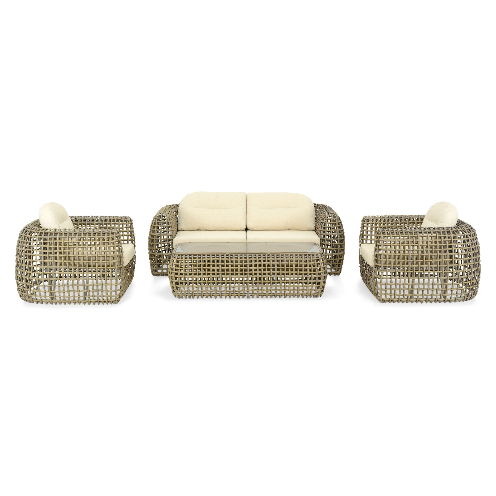 Mobilier premium realizat din cele mai bune materiale existente în piață, sub brandul internațional Skyline Design. Toate produsele sunt realizate din structură de aluminiu robustă, vopsită în câmp electrostatic, cu împletituri sintetice din polipropilenă și au protecție împotriva decolorării Vyro. Pernele sunt din poliuretan de înaltă densitate, îmbrăcate cu țesătură din poliester impermeabil și tratat împotriva decolorării Sunproof. Topurile meselor au sticlă securizată din cristal, cu grosime de 8-12 mm.