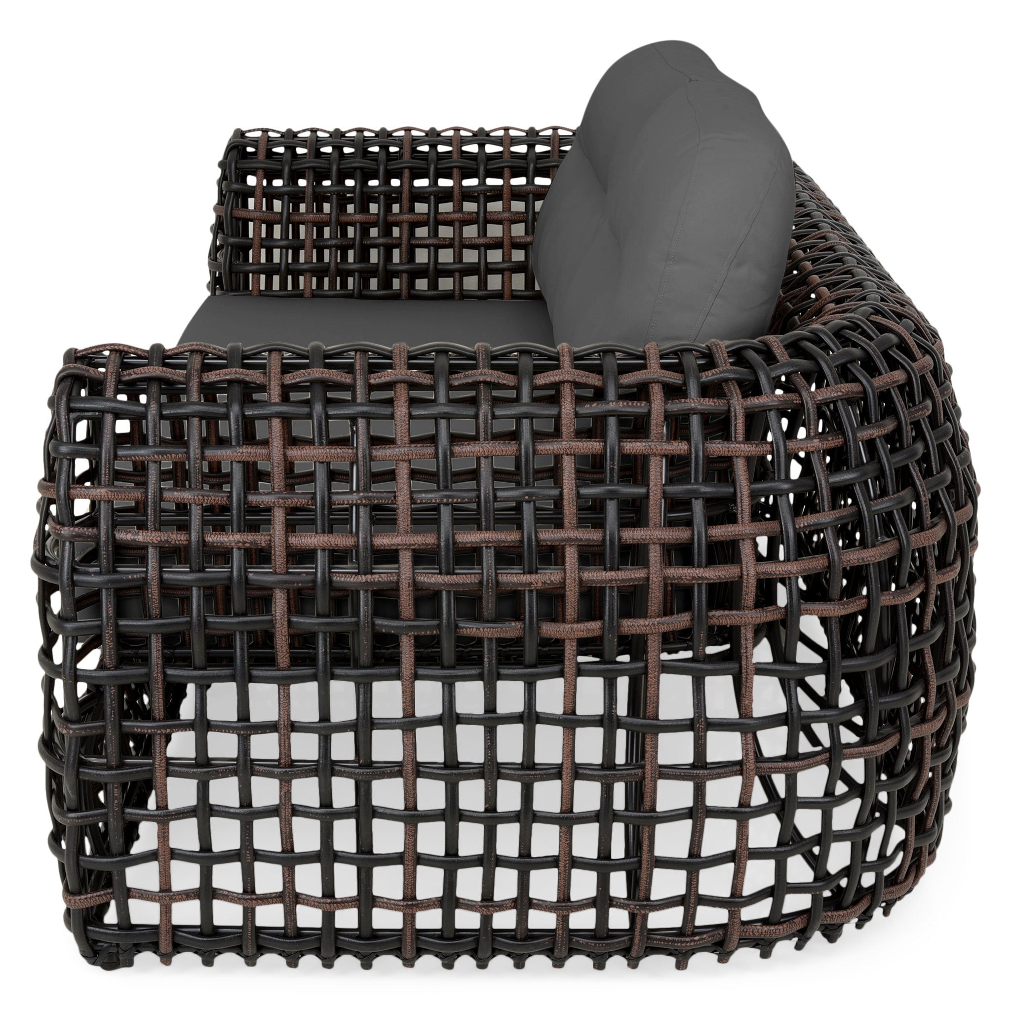 Canapea 3 locuri, exterior Dinasty. Canapeaua din gama Dinasty este o piesă rezistentă și estetică pentru mediul exterior, contribuind la amenajarea unui colț perfect pentru relaxare pe teresa sau în grădina voastră. Canapeaua are o structură din aluminiu și fibre sintetice, iar confortul este asigurat de țesătura Olefin Sunproof. Aspectul estetic și cromatica versatilă o vor integra cu mult bun gust în orice idee de amenajare a spațiului vostru.