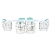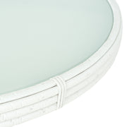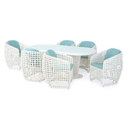 Masă Dinasty. Masa ovală din gama Dinasty este o piesă rezistentă și estetică pentru mediul exterior, contribuind la amenajarea unui colț perfect pentru relaxare pe terasa sau în grădina voastră. Realizată din structură de aluminiu vopsit în câmp electrostatic și împletită cu fibre sintetice Vyro cu protecție UV, aceasta are topul mesei fabricat din sticlă de cristal securizată. Aspectul estetic și cromatica versatilă îl vor integra cu mult bun gust în orice idee de amenajare a spațiului vostru. Găsiți-vă inspirația în decorarea exteriorului de acasă începând cu această masă ovală, căreia să îi adăugați restul pieselor de mobilier potrivite.
