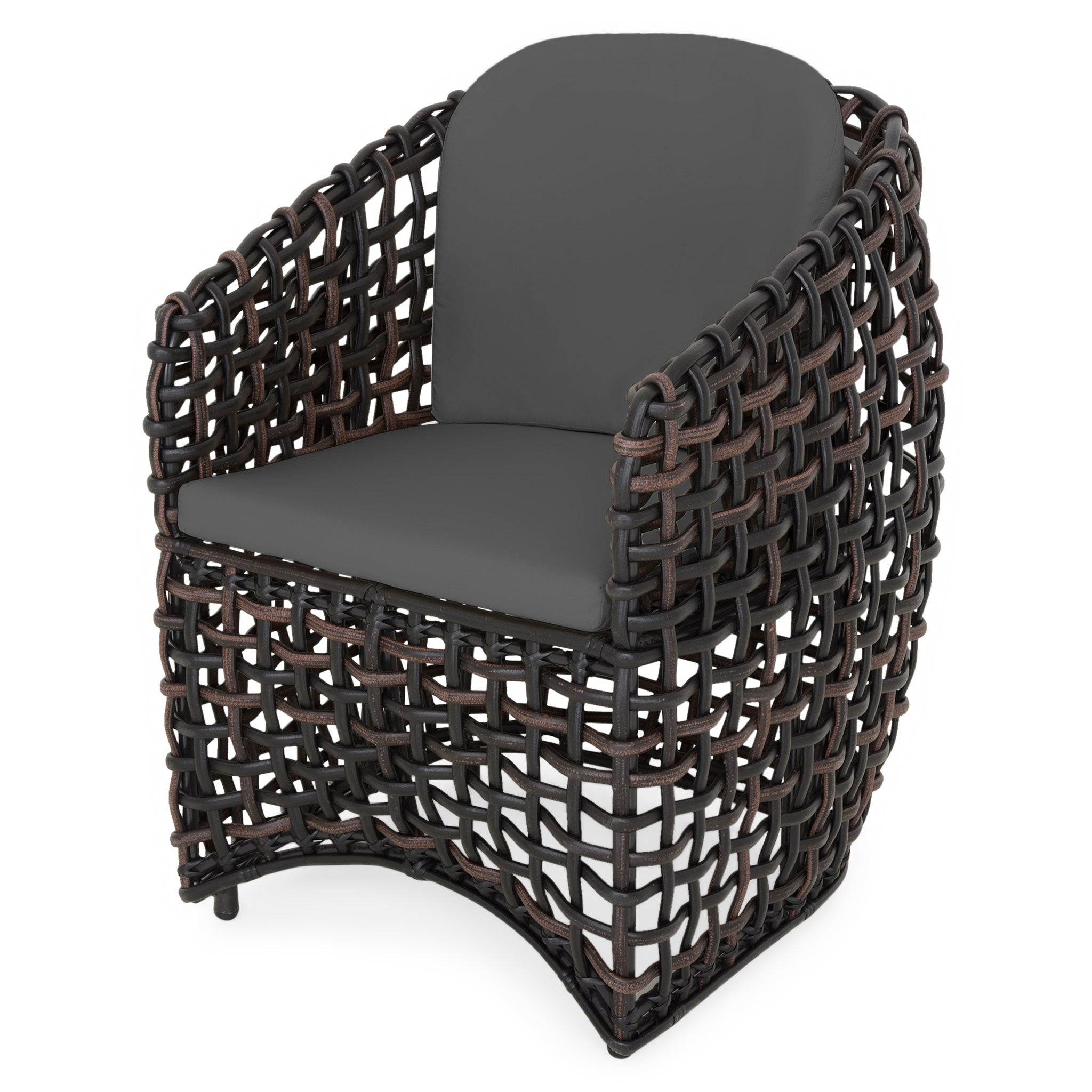 Scaun exterior Dinasty. Scaunul din gama Dinasty este o piesă rezistentă și estetică pentru mediul exterior, contribuind la amenajarea unui colț perfect pentru relaxare pe terasa sau în grădina voastră. Realizat din structură de aluminiu vopsit în câmp electrostatic și împletită cu fibre sintetice Vyro cu protecție UV, acesta include perne din țesătură Olefin Sunproof cu protecție împotriva umezelii și a decolorării. Aspectul estetic și cromatica versatilă îl vor integra cu mult bun gust în orice idee de amenajare a spațiului vostru. Găsiți-vă inspirația în decorarea exteriorului de acasă începând cu acest scaun, căruia să îi adăugați restul pieselor de mobilier potrivite.