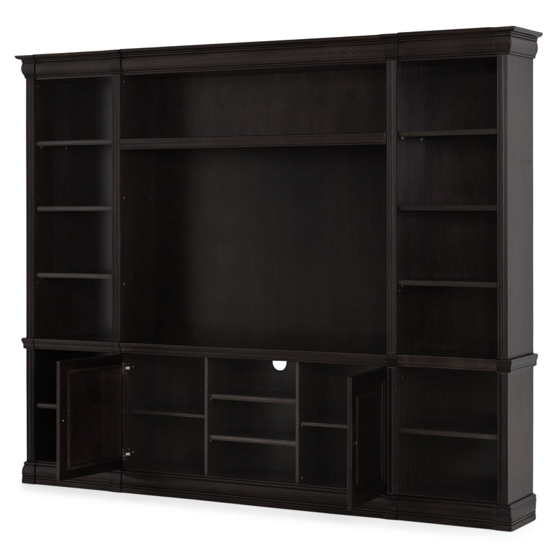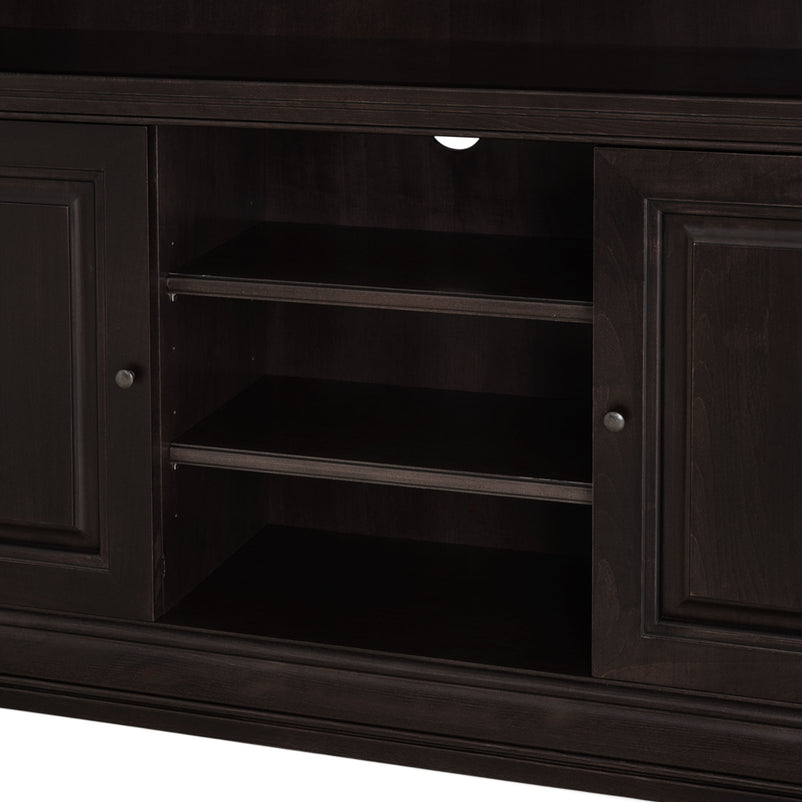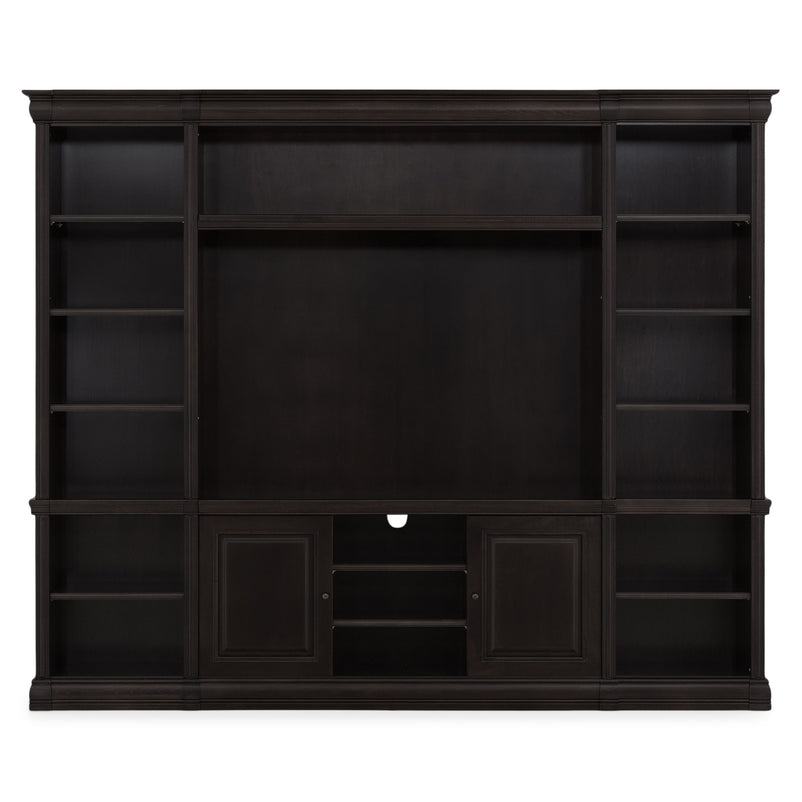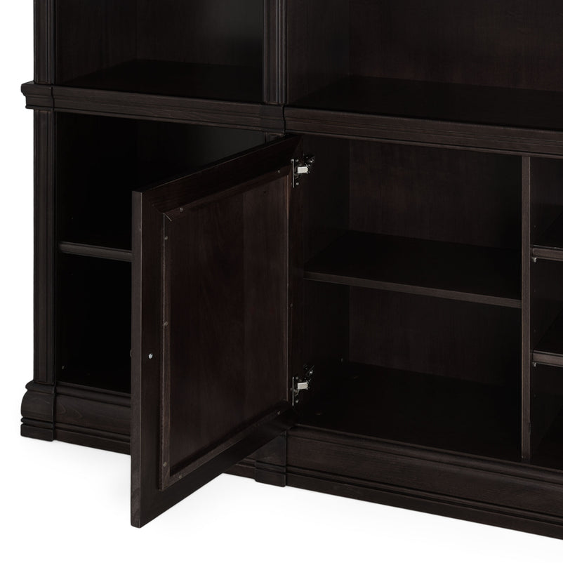 Ansamblu living Chocolate. Gama de mobilier Chocolate relevă sobrietate și eleganță, grație elementelor ce o definesc, rezultând forma clasicului francez fără vârstă. Ansamblul living se potrivește pentru a amenaja o cameră spațioasă. Realizată în linii clasice și decorată cu detalii fine, aceasta amenajează o zonă practică și bine organizată datorită spațiilor de depozitare, care oferă un spațiu generos pentru așezarea diferitelor decorațiuni sau obiecte. Cromatica este sobră, aducând decorului un aer rafinat. Etajera face parte din ansamblul componibil Chocolate. Aceasta poate fi achiziționată independent sau poate fi cuplată cu alte etajere modulare din aceeași gamă, astfel încât să puteți construi propria configurație, în spațiul dorit. Utilizată ca produs independent, etajera necesită achiziționarea unui set de 2 pereți terminali. Într- o compoziție personalizată, cu mai multe etajere, este necesară achiziționarea de pereți intermediari și a unui set de 2 pereți terminali. Setul de pereți terminali are rol de stabilitate și aduce un plus de eleganță prin faptul că soclul și cornișa se continuă și pe lateral. Peretele intermediar are rol de legătură între două etajere, la interiorul ansamblului.