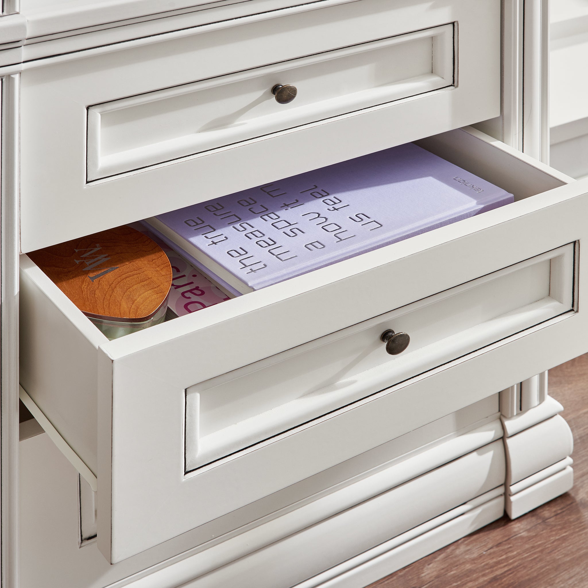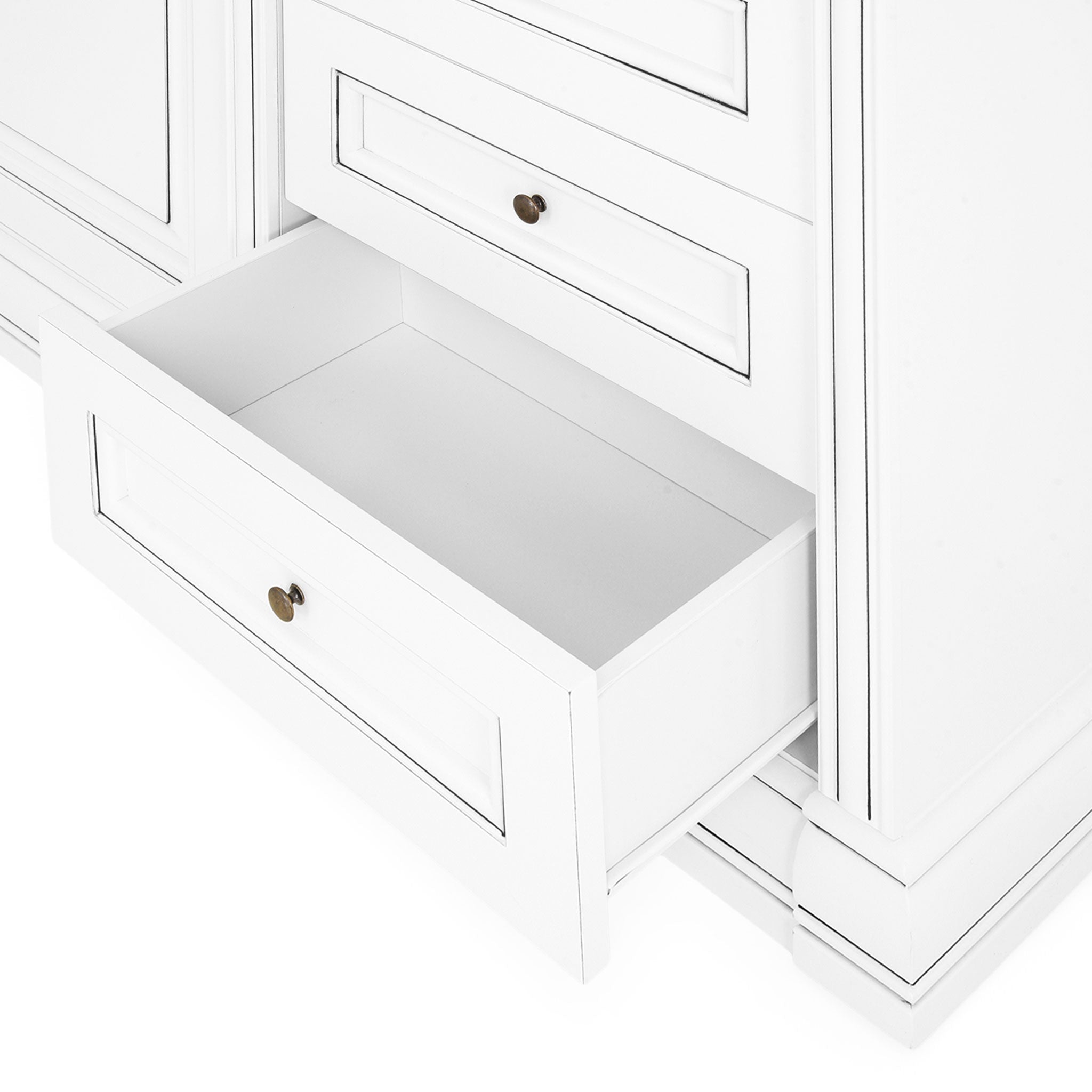 Ansamblu living Jazz. Gama de mobilier Jazz evocă eleganță și rafinament prin piesele pe care le propune, acestea fiind realizate pentru a vă crea acasă un ambient plăcut. Cromatica versatilă și liniile fine feminine care brăzdează piesele de mobilier vă oferă liniștea de care aveți nevoie într-un decor divers. Ansamblul pentru living Jazz își demonstrează utilitatea prin numeroasele spații de stocare pe care le oferă, pentru a vă aranja lucrurile și obiectele decorative. Estetica ansamblului combină modernul finisaj alb antichizat și patinat cu formele clasice franceze nemuritoare, reieșind o piesă de mobilier realizată cu stil și delicatețe. Ușile și sertarele sunt prevăzute cu mânere metalice în culoarea bronzului, care îi conferă întregii piese un aspect plăcut. Cele 6 sertare vă vor fi de ajutor pentru a depozita lucrurile voastre utile.
