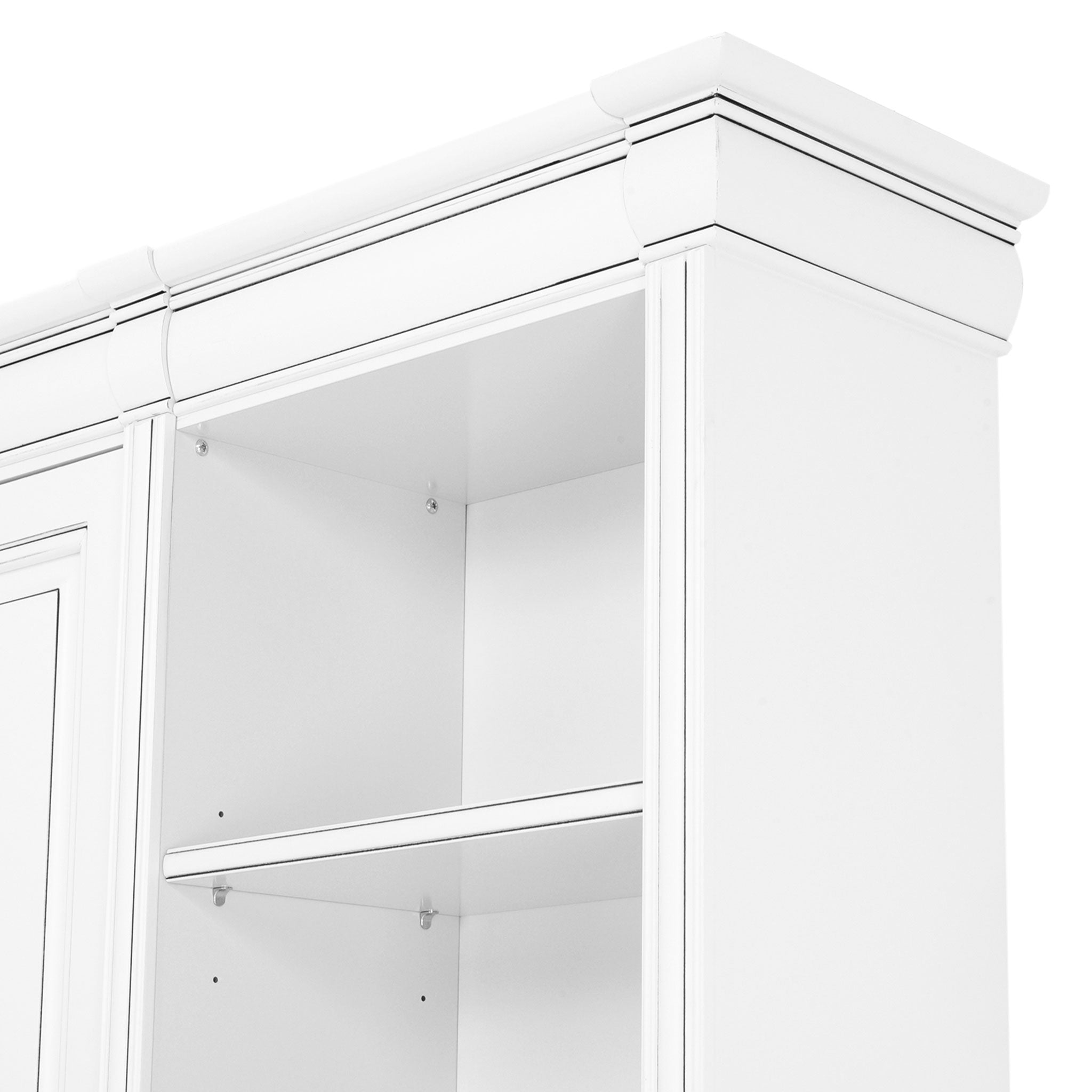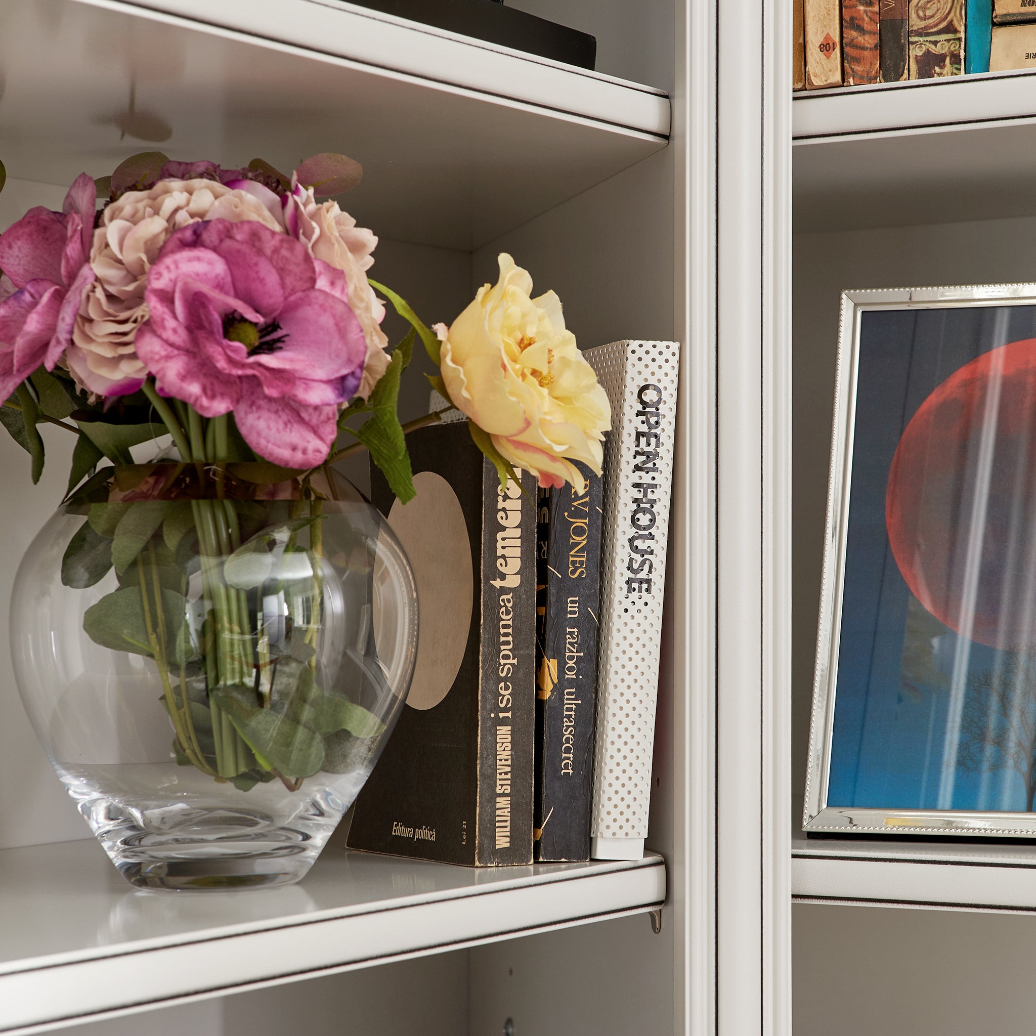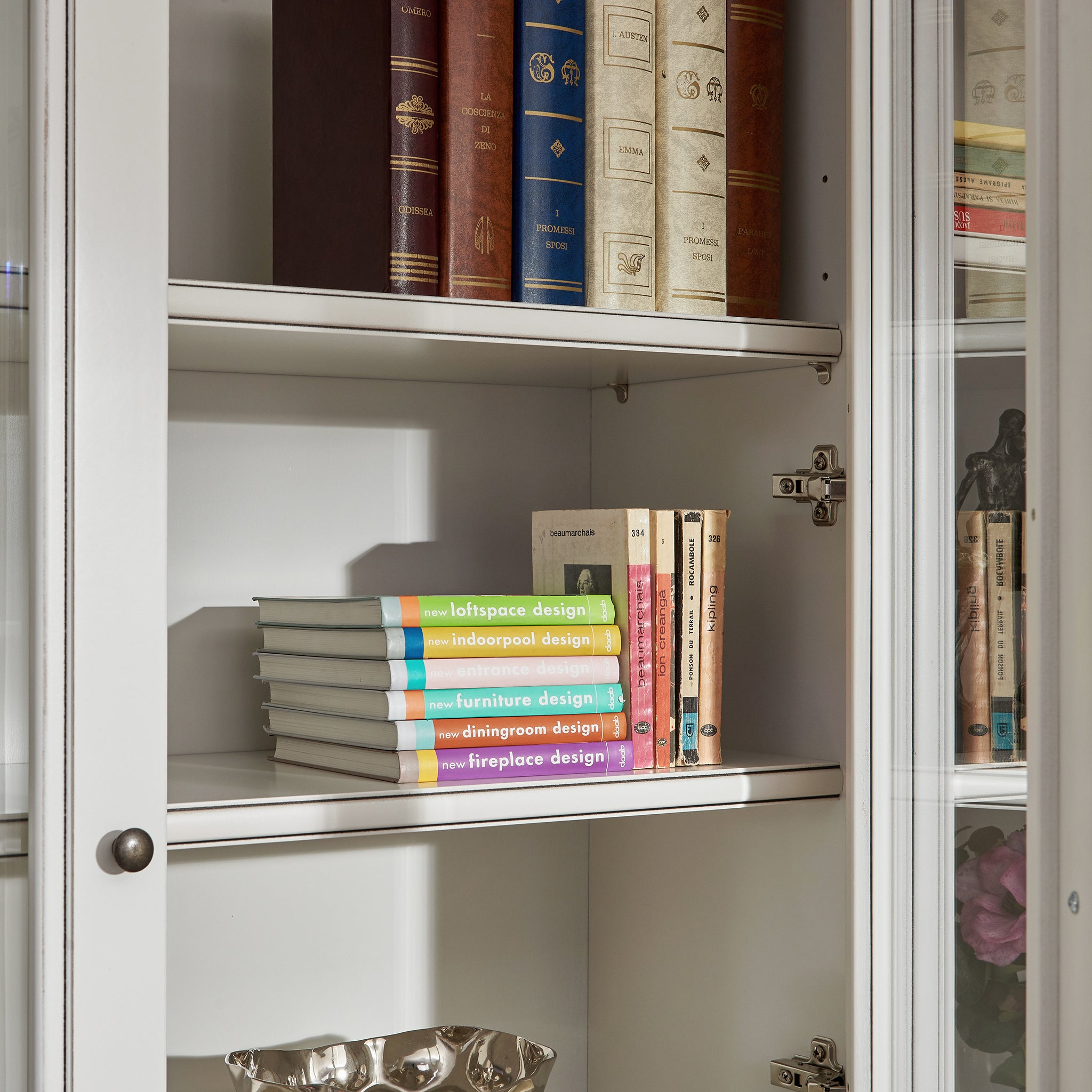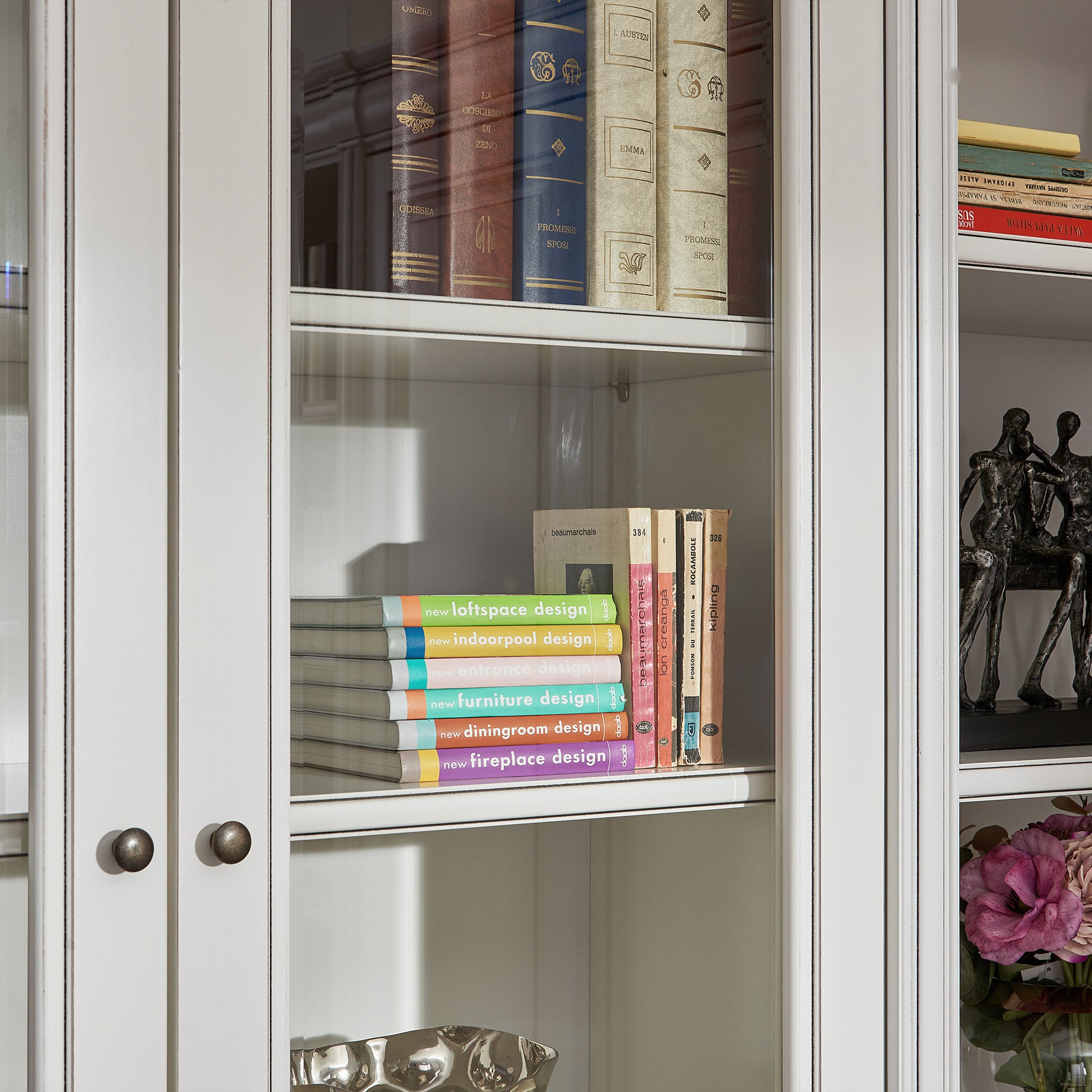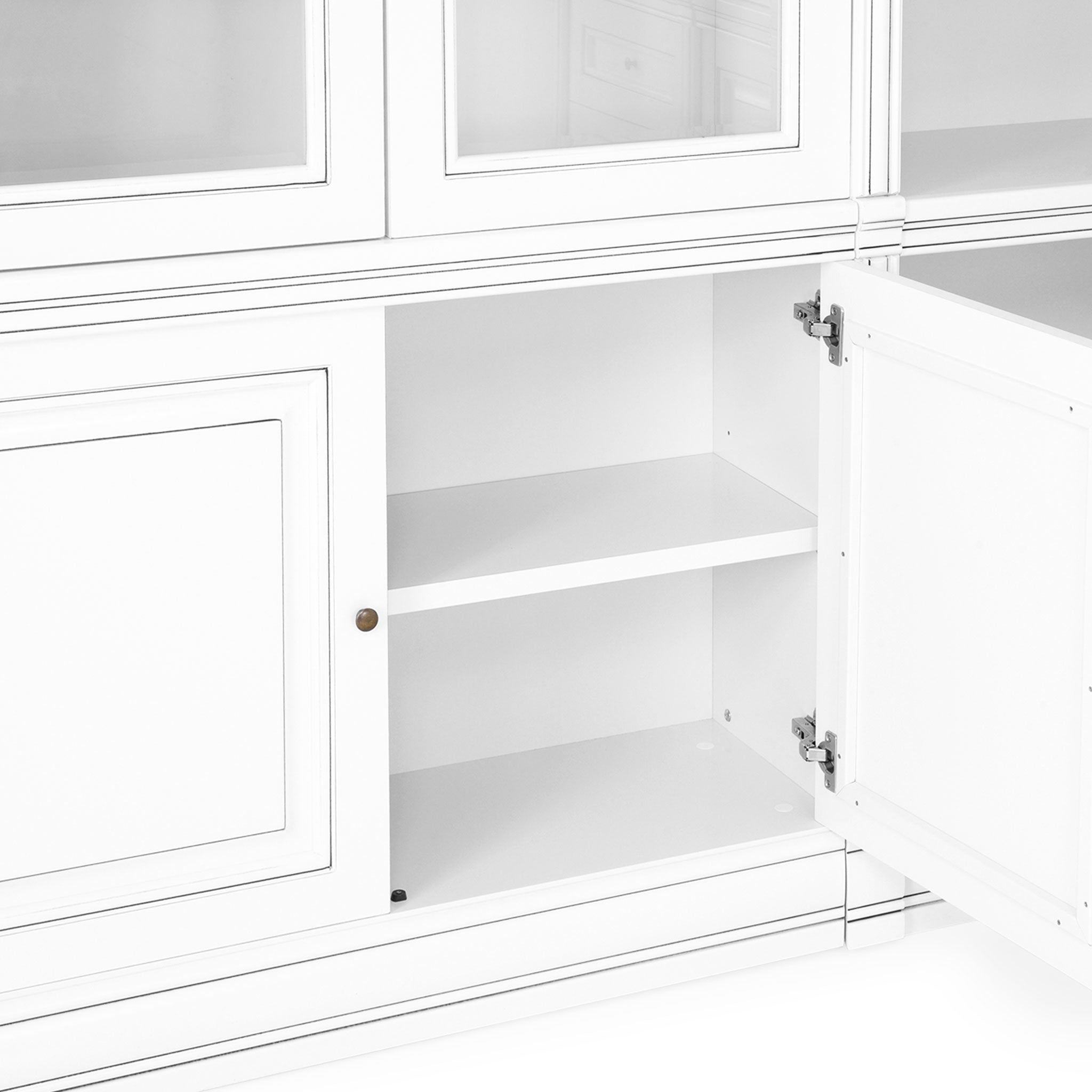 - 1x etajeră lată, 2 uși inferioare și 2 uși sticlă: L. 103 x l. 34 x H. 230 cm.