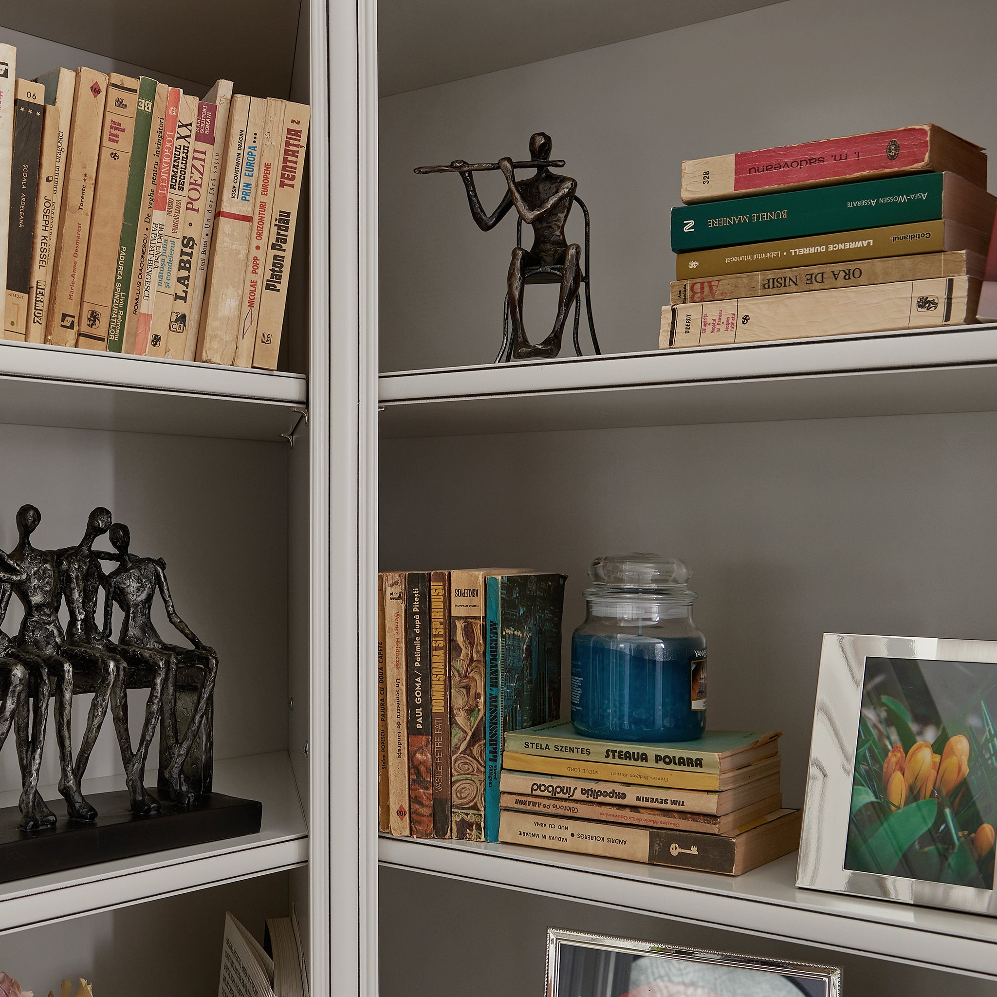 - 1x etajeră lată, 2 uși inferioare și 2 uși pline: L. 103 x l. 34 x H. 230 cm.