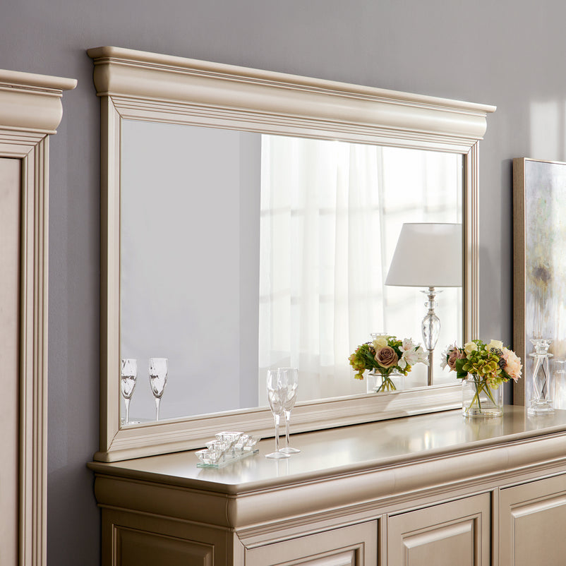 Oglindă Cardinale. Oglinda Cardinale are o arhitectură deosebită, fiind lucrată cu pricepere din materiale lemnoase masive de cea mai bună calitate, precum fag, paltin și tei, cu elemente din MDF și PFL finisate și vopsite în culoarea șampaniei.