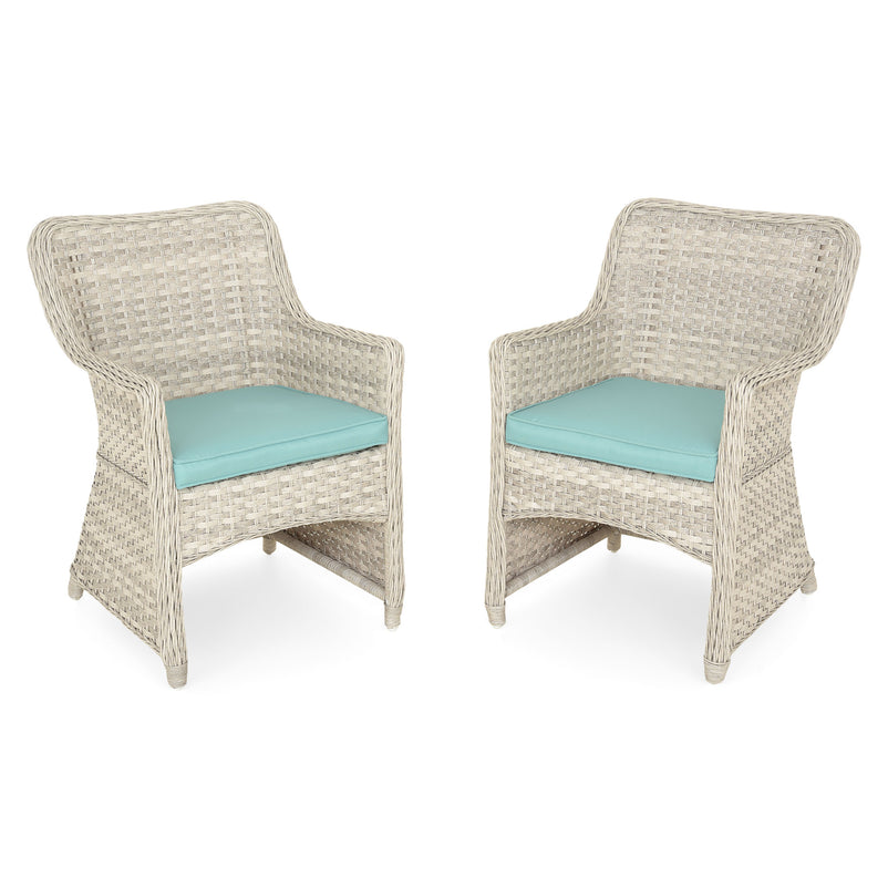 Set mobilier terasă/grădină, 2 fotolii Calzada. Cromatica piesei Calzada evidentiaza cu usurinta stilul modern si inedit al acesteia. Fotoliul este realizat din structura de otel vopsita in camp electrostatic, impletita cu fibre sintetice tratate UV. Pernele din poliester impermeabil va ofera un nivel ridicat de confort. Fotoliul Calzada va fi elementul decorativ central al spatiului vostru, gratie aspectului sau de poveste.