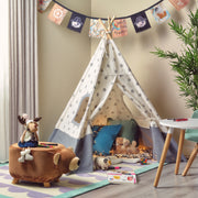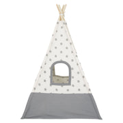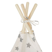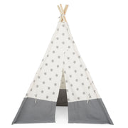 Cort copii Stars. Fiecare copil are nevoie de un mic refugiu, imaginându-se departe de casă dar aflându-se în siguranță, în limitele spațiului de joacă al camerei sale. Cortul indian are un cadru de susținere din lemn de fag, iar materialul de acoperire este rezistent, fiind confecționat din bumbac și poliester, cu imprimeuri joviale. Acesta are 2 ferestre de vizitare și este prevăzut în partea din față cu o ușă de acces, cu sistem de închidere tip bride din același material. Produsul este destinat utilizării în interior și acomodează 2-3 copii, cu vârste cuprinse între 3 și 7 ani. Cortul poate fi montat ușor ori de câte ori dorește copilul să se joace. Totodată, cortul va contribui și la dezvoltarea abilităților motorii ale celui mic.
