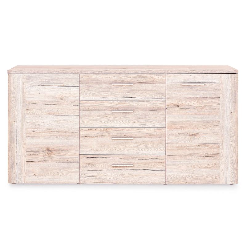 Bufet Trapani. Practic și ideal pentru a completa zona de dining, bufetul încântă printr-o estetică deosebită, simplitatea și rafinamentul unei piese de mobilier care respectă modernul și imprimă eleganța. Detaliile sunt atent conturate, iar liniile drepte completează cu un aer care denotă confort și căldură, aducând un plus ambianței din casa voastră. În plus, oferă un spațiu generos pentru depozitare, datorită celor 4 sertare și 2 uși, unde puteți organiza lucrurile de care aveți nevoie.