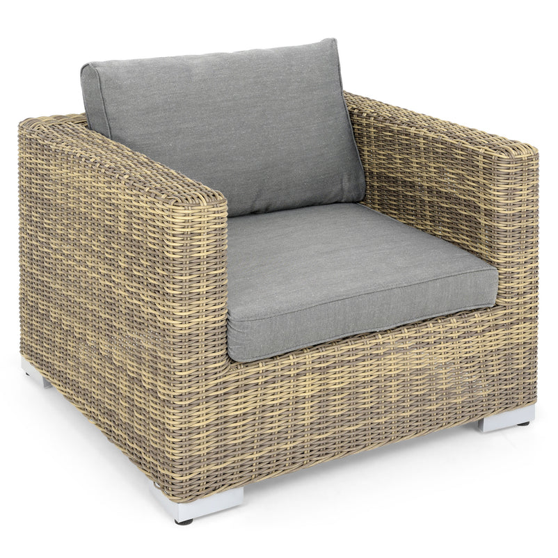Set mobilier terasă/grădină, colțar 7 piese Cape Town. Setul de mobilier din gama Cape Town este o variantă care va aduce un plus practic și estetic în amenajarea spațiului din terasa sau grădina voastră. Piesele setului au o structură de aluminiu vopsită în câmp electrostatic, cu fibre sintetice din polipropilenă ce imită ratanul, cu protecție UV. Confortul este asigurat de pernele din poliester, care sunt detașabile și au protecție împotriva apei și a decolorării. Cromatica bicoloră îl integrează cu ușurință în orice decor al spațiului exterior.