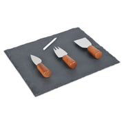 Set platou brânzeturi și tacâmuri Cheese. Mesele voastre trebuie să fie aspectuoase fie că vorbim de veselă sau felurile de mâncare pe care le aveți preparate în casă. Platoul pentru brânzeturi Cheese vine în întâmpinarea tuturor pretențioșilor care își doresc să aibă acasă un accesoriu ieșit din comun pe masă. Acesta este realizat din inox si ardezie, finisajul său fiind unul mat.