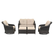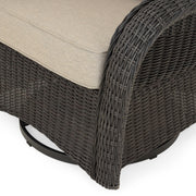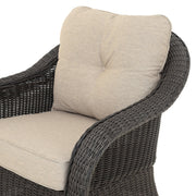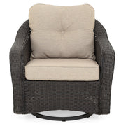 Fotoliu rotativ exterior Cannet. Odată cu începutul sezonului cald, petreceți tot mai mult timp în aer liber, pe terasa sau în grădina voastră, bucurându-vă de soare, de adierea vântului, de momentele relaxante alături de cei dragi. Completați spațiul vostru de relaxare la exterior cu mobilierul pentru terasă și grădină din gama Cannet. Fotoliul rotativ din gama Cannet este realizat din structură solidă de aluminiu vopsită în câmp electrostatic și împletită cu fibre sintetice tip 'round wicker' cu protecție împotriva razelor UV. Fotoliul include perne din poliester cu protecție împotriva umezelii și a razelor UV.