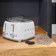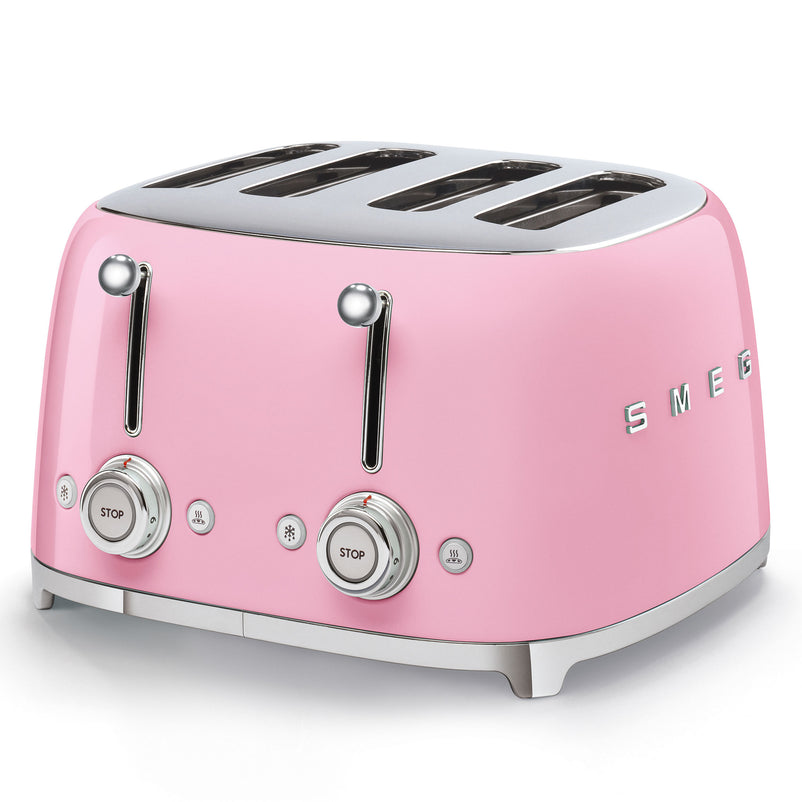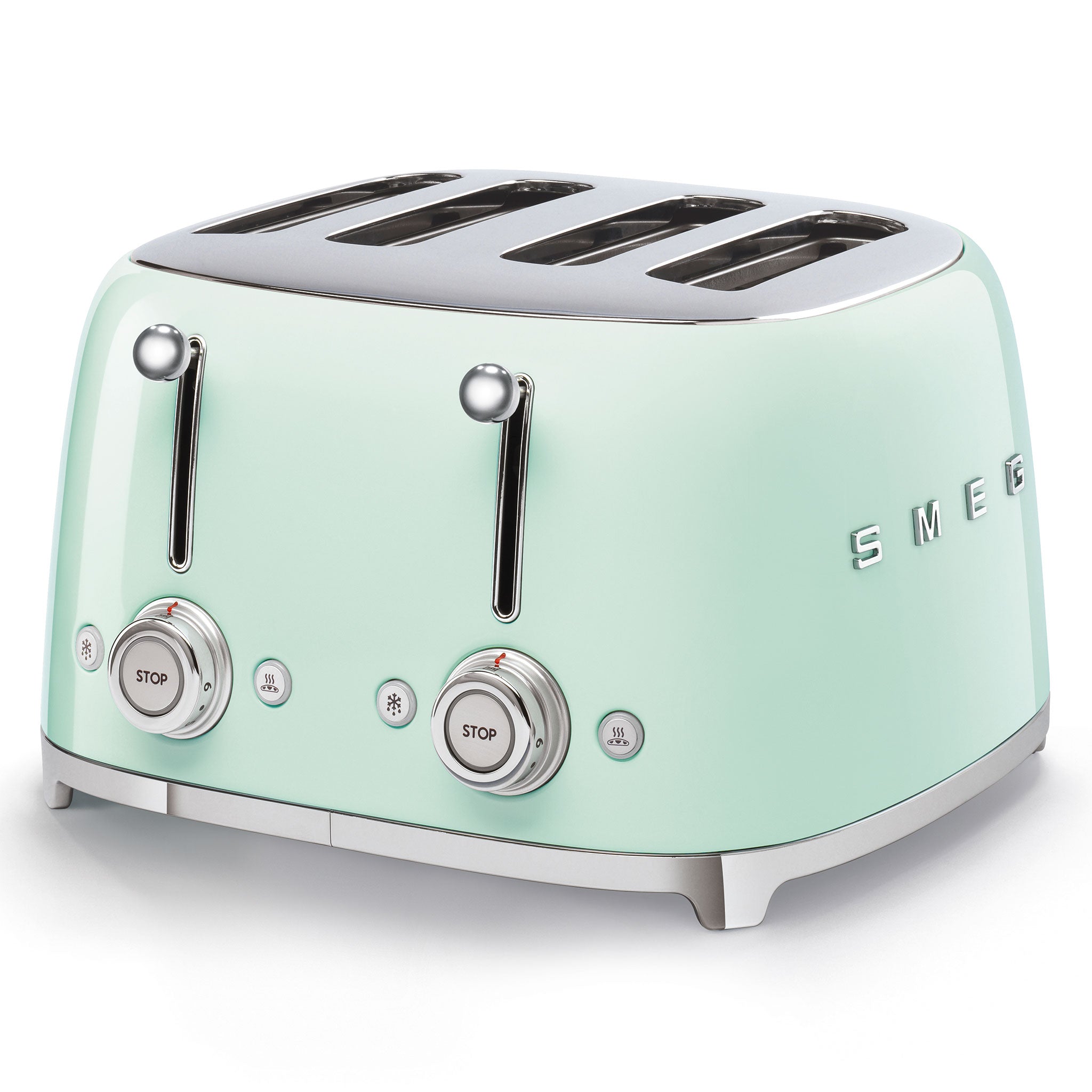 Prăjitor pâine Smeg. Colecția de prăjitoare Smeg vă vine în ajutor pentru adăugarea unui plus funcțional, dar și unul estetic în interiorul bucătăriei voastre. Designul prăjitorului de pâine Smeg este delicat, ușor de integrat în colecția de electrocasnice. Prăjitorul de pâine Smeg vă oferă un mic dejun cald și crocant în fiecare dimineață. Combină ergonomia cu funcționalitatea și echilibrul estetic, fiind o piesă deosebit de practică pentru un mic dejun rapid și delicios.