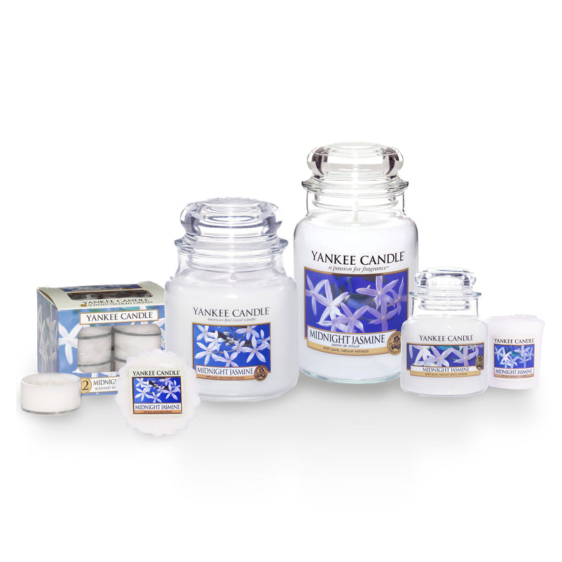 Yankee Candle Midnight Jasmine desăvârșește atmosfera din încăpere cu parfumul seducător al iasomiei, completată de caprifoi, neroli și flori de mandarin.