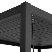 Pavilion Mirador Premium. Pavilionul Mirador Premium este un accesoriu perfect pentru orice terasă sau grădină, grație funcționalității sale. Fie că vă doriți un spațiu unde de relaxare în voie, fie că vreți ca petrecerile să nu fie întrerupte de ploaie, pavilionul Mirador Premium va contribui armonios la amenajarea spațiului exterior. Structura acestuia este confecționată din aluminiu Tiger, vopsită în câmp electrostatic, oferindu-i rezistență și durabilitate. Lamelele din aluminiu vopsit în câmp electrostatic sunt pliabile și accesorizate cu cameră de aer care în momentul extinderii acesteia se creează un efect de etanșeitate, acoperind întreaga terasă. Rezistența sa permite un debit de apă de până la 5L/minut și 25 kg/ lamela în cazul zăpezii, recomandându-se să păstrați lamelele în poziția deschis pe timpul unei zăpezi puternice. Fiecare stâlp al pavilionului are un sistem pluvial de colectare a apei ce vă ajută în zilele ploioase. Simplă de asamblat și ușor de operat, pavilionul Mirador Premium vă prelungește sezonul în aer liber.