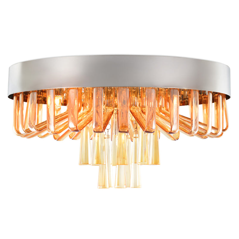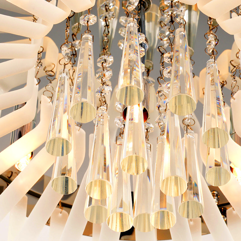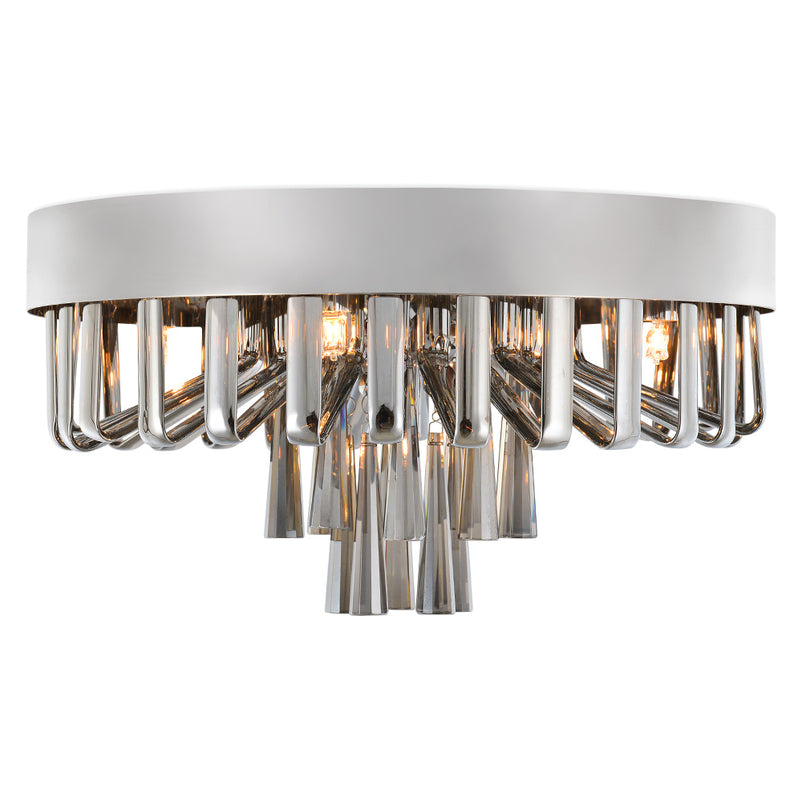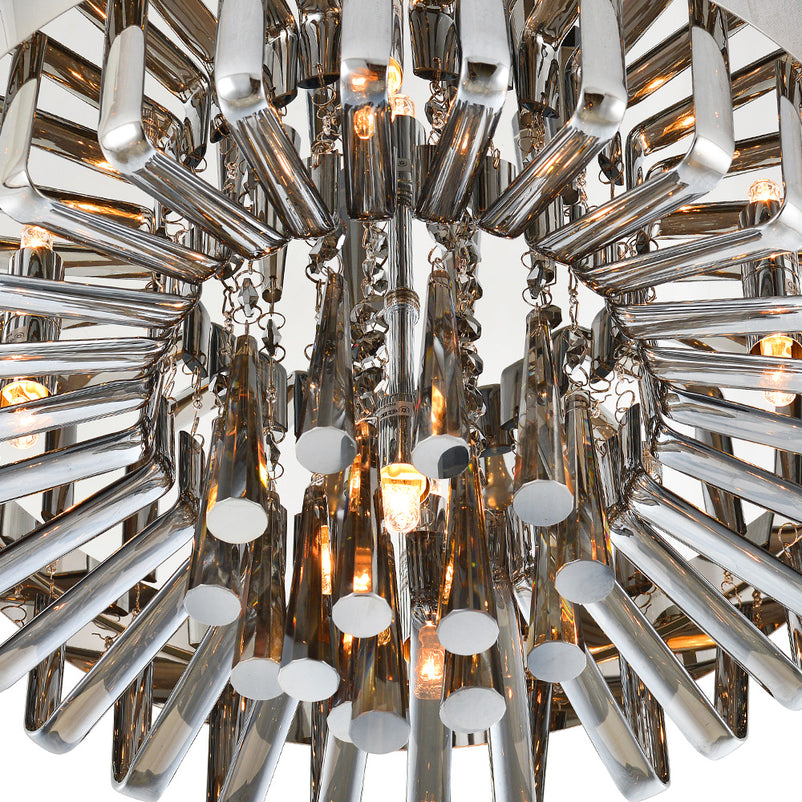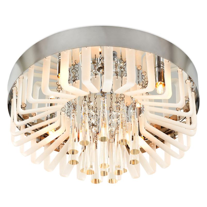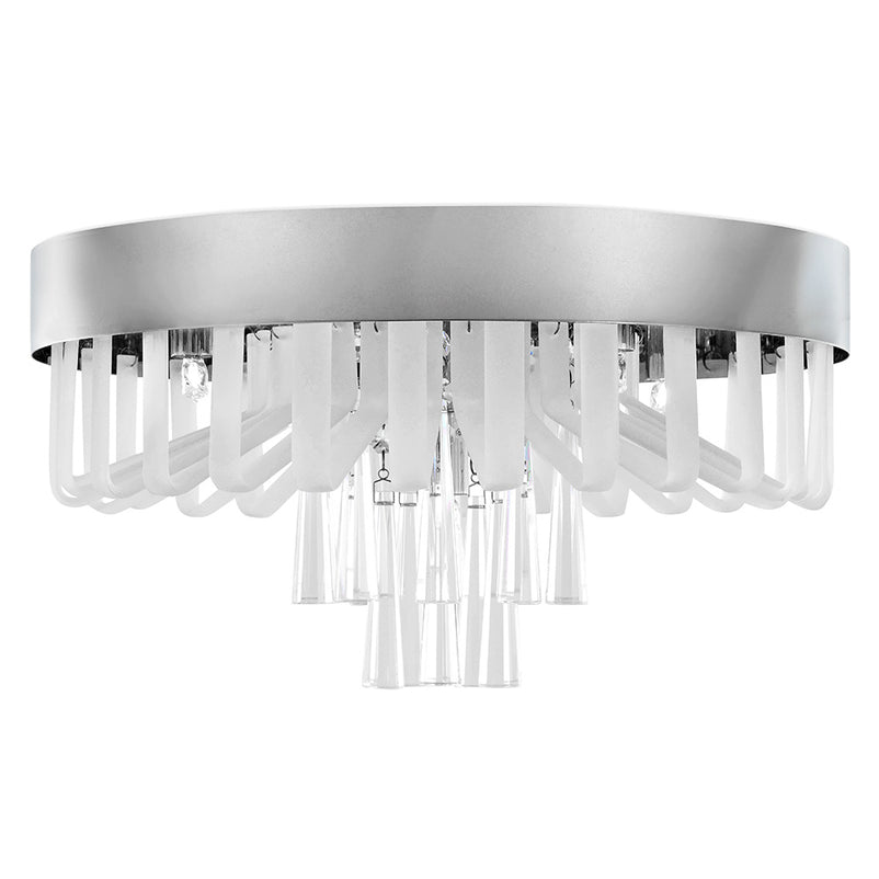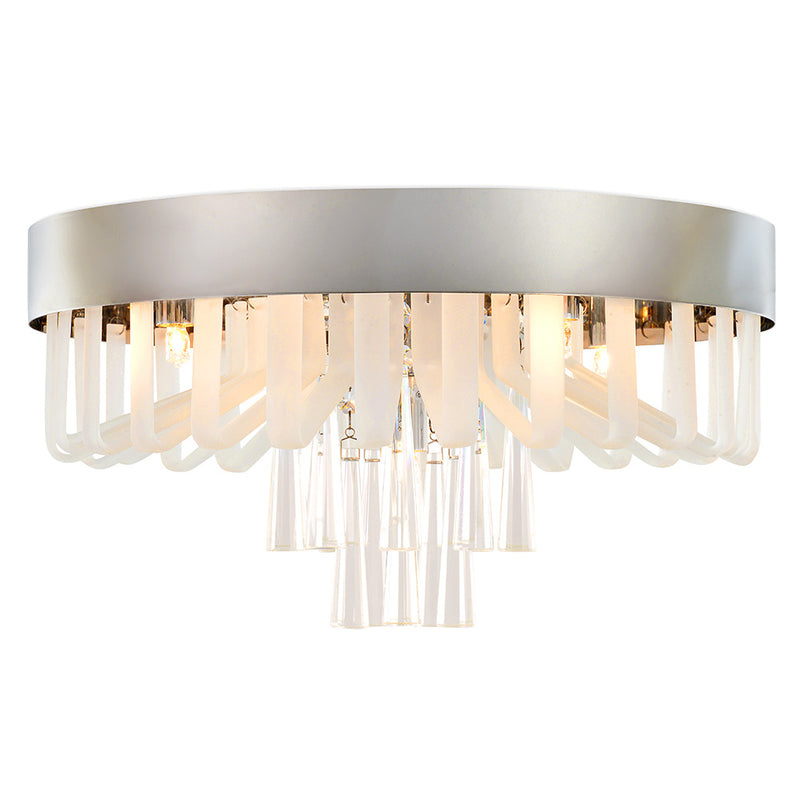 Plafoniera Hewitt este un spectacol vizual plin de rafinament. Structura din metal sustine o multitudine de cristale si forme de sticla de culoare alba, ce va incununeaza camera cu stil. Plafoniera Hewitt reprezinta combinatia perfecta dintre functionalitate si bun gust. Aceasta va lumineaza uniform spatiul, in timp ce il accesorizeaza cu finete.