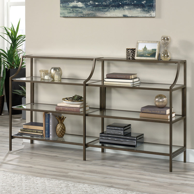 Consolă Int Lux. Integrați cu ușurință în decorul vostru de acasă o consolă concepută delicat, astfel încât să înfrumusețați spațiul unde vă petreceți timpul. Designul acesteia îmbină simplitatea picioarelor cu acoladele care leagă structura metalică finisată în auriu. Cele 4 polițe vin să vă ajute pentru a o decora frumos cu vaze cu flori, cărți, rame foto sau alte obiecte care vă pot crea un spațiu plin de inspirație.