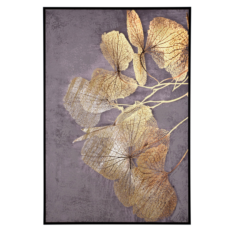 Tablou canvas Elevation. Dați interiorului casei voastre o notă plină de eleganță. Tabloul surprinde prin ideea artistică un model floral, care imprimă o notă de rafinament și multă delicatețe în spațiul de acasă. Tabloul are un finisaj pictat și este decorat cu foiță aurie . În plus, este versatil și se potrivește cu multe idei pentru designul camerei voastre.
