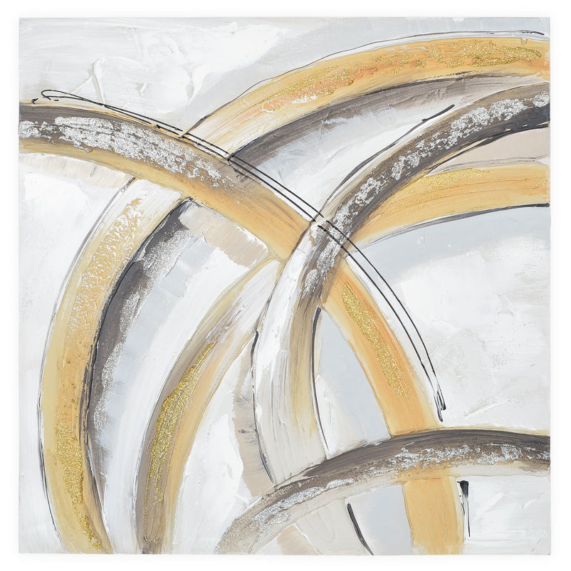 Tablou canvas Vario II. Tabloul Vario II va decora într-un mod elegant spațiul interior. Liniile circulare alcătuiesc designul tabloului care va contribui la crearea unui spațiu de artă excelent în casa voastră. Lucrarea este realizată pe canvas din poliester și suport din lemn, în tonuri de alb, negru și auriu.