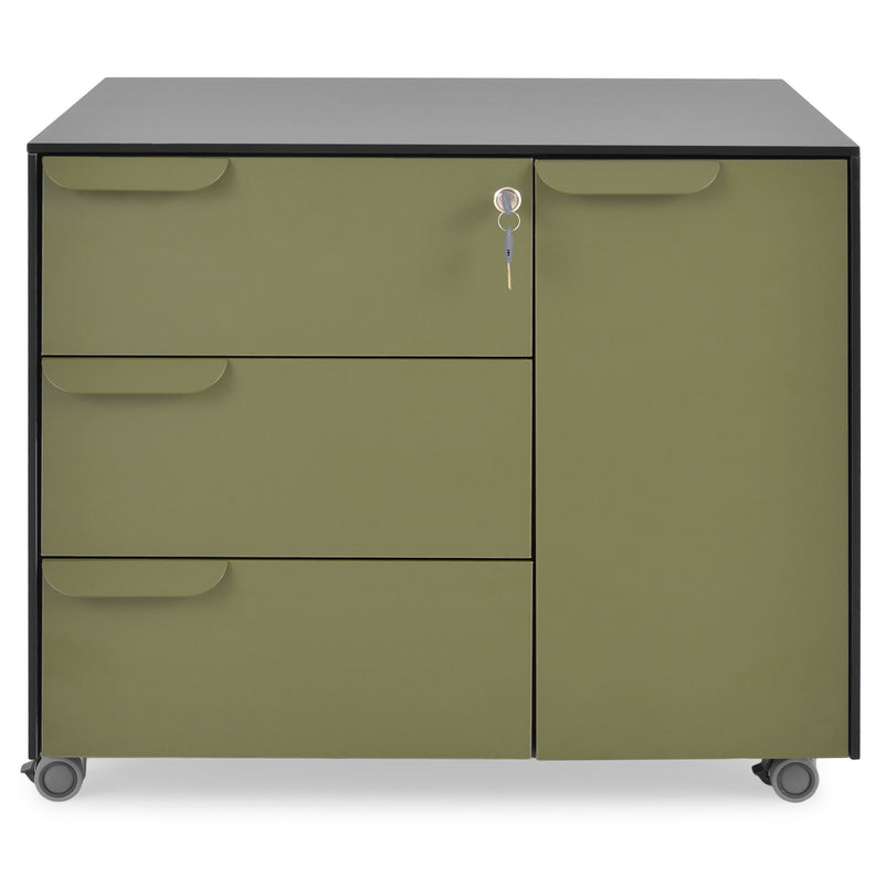 Casetieră, 3 sertare, 1 ușă Fil Rouge. Mediul office se bucură atât de o atmosferă primitoare și elegantă, cât și de logistica necesară productivității, mulțumită pieselor din gama Fil Rouge, proiectate să creeze atmosfera ideală pentru decizii inspirate, multitasking și gestiune eficientă. Casetiera cu trei sertare și o ușă din gama Fil Rouge iese în evidență prin spațiul generos de depozitare, cu cinci spații ofertante și cromatica îndrăzneață, nonconformistă, care aduce în birou o notă modernă de naturalețe.